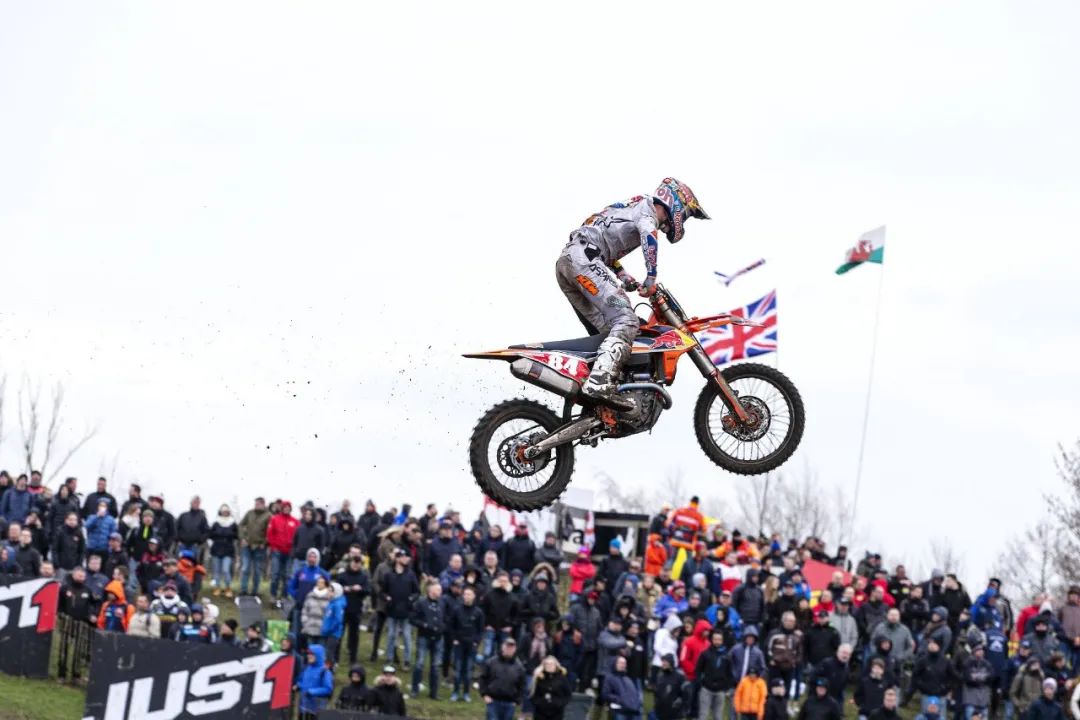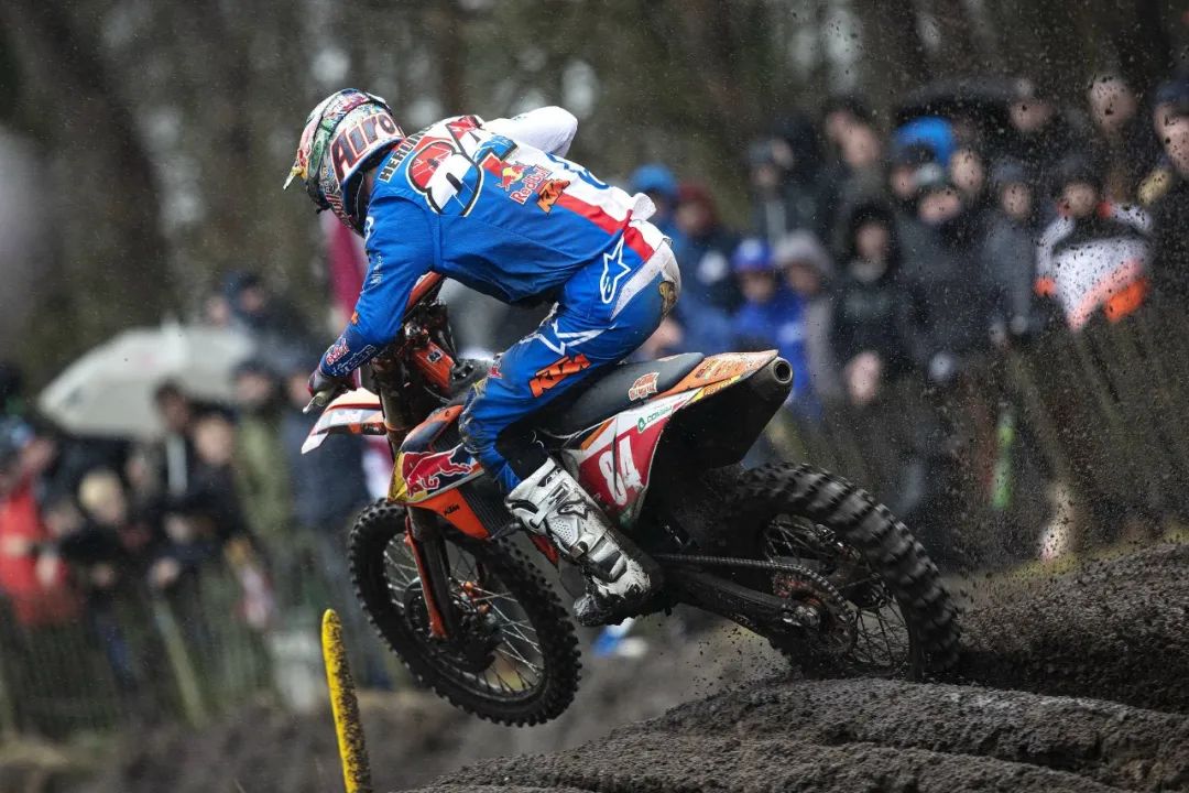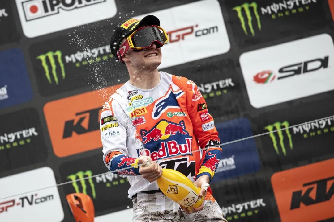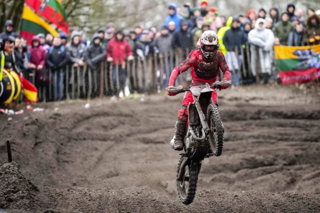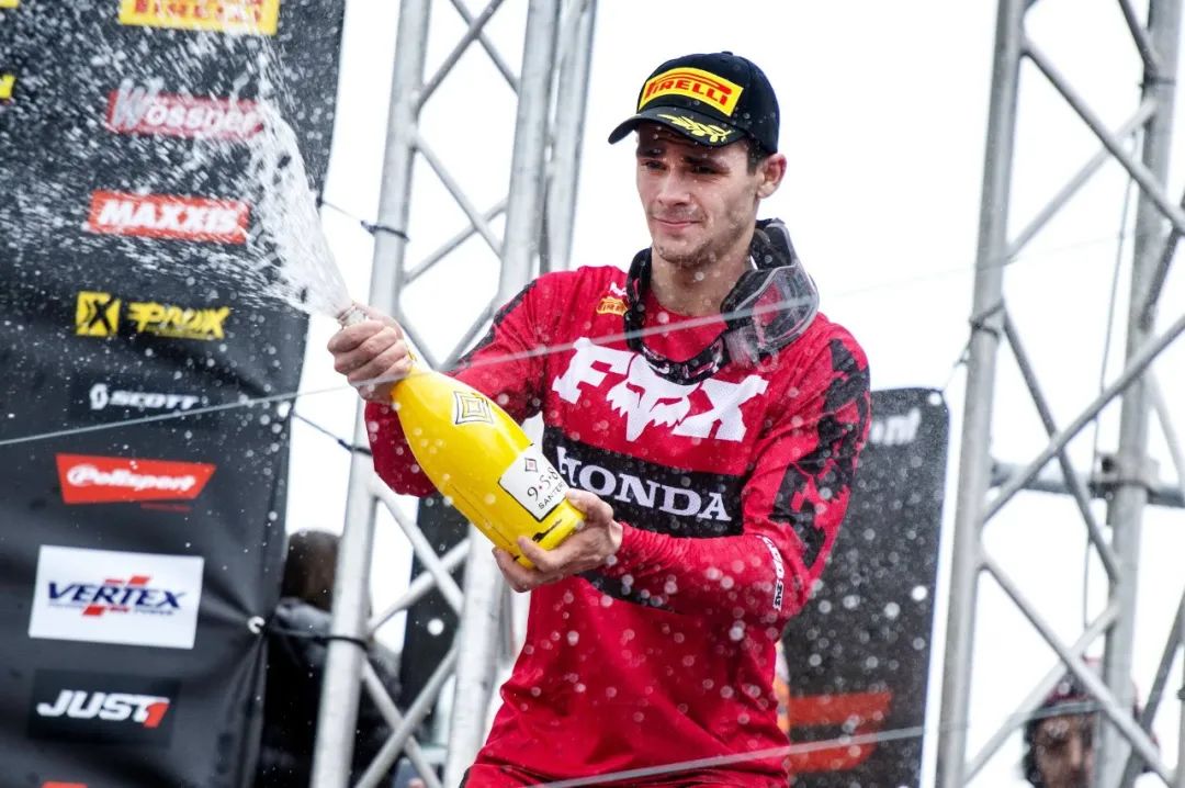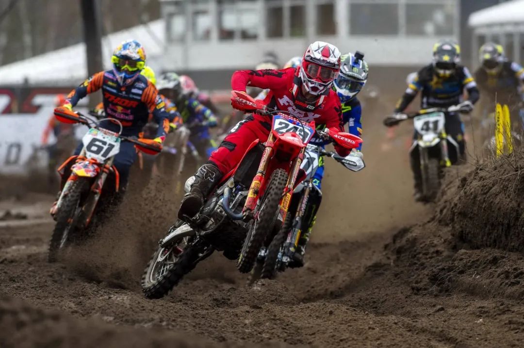 MXGP 級別、第一節(jié)的比賽,駕駛 243 號車、HRC 工廠車隊的應(yīng)屆世界冠軍蓋沙(Tim Gajser),憑借著在比賽初段、快速擺脫混亂車群的成功突圍,輕松奪得了第一節(jié)比賽的勝利,領(lǐng)先優(yōu)勢超過了 21 秒。