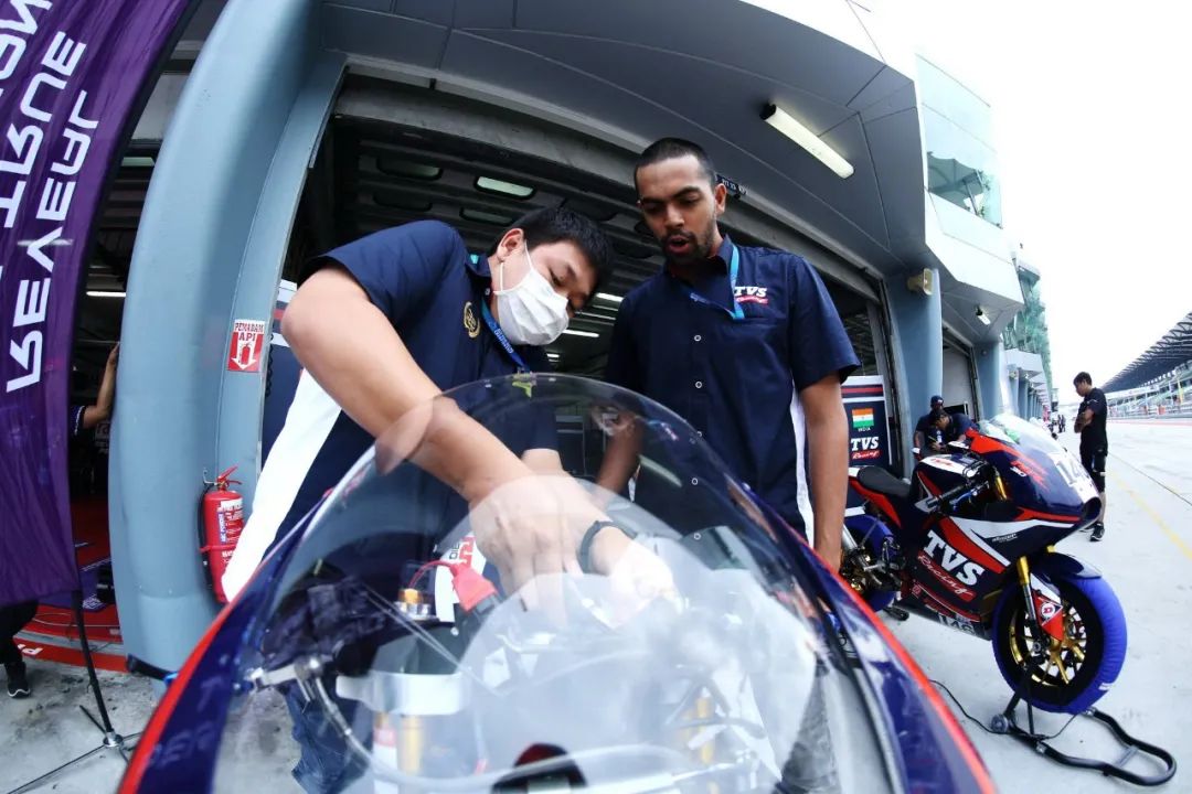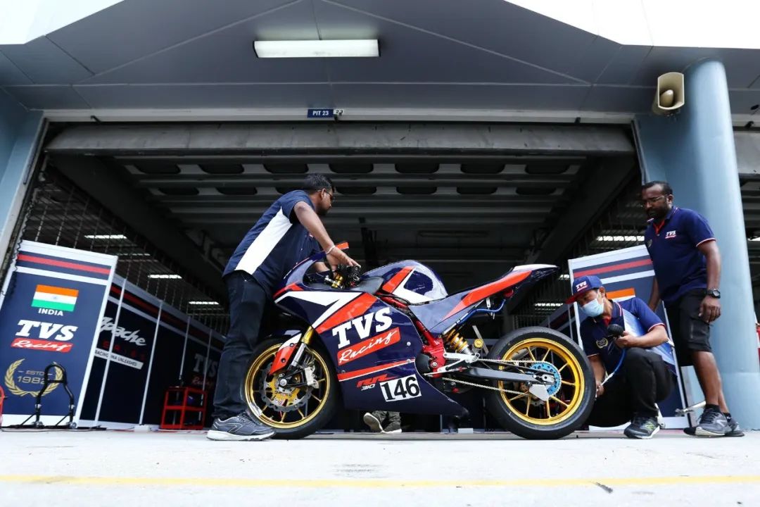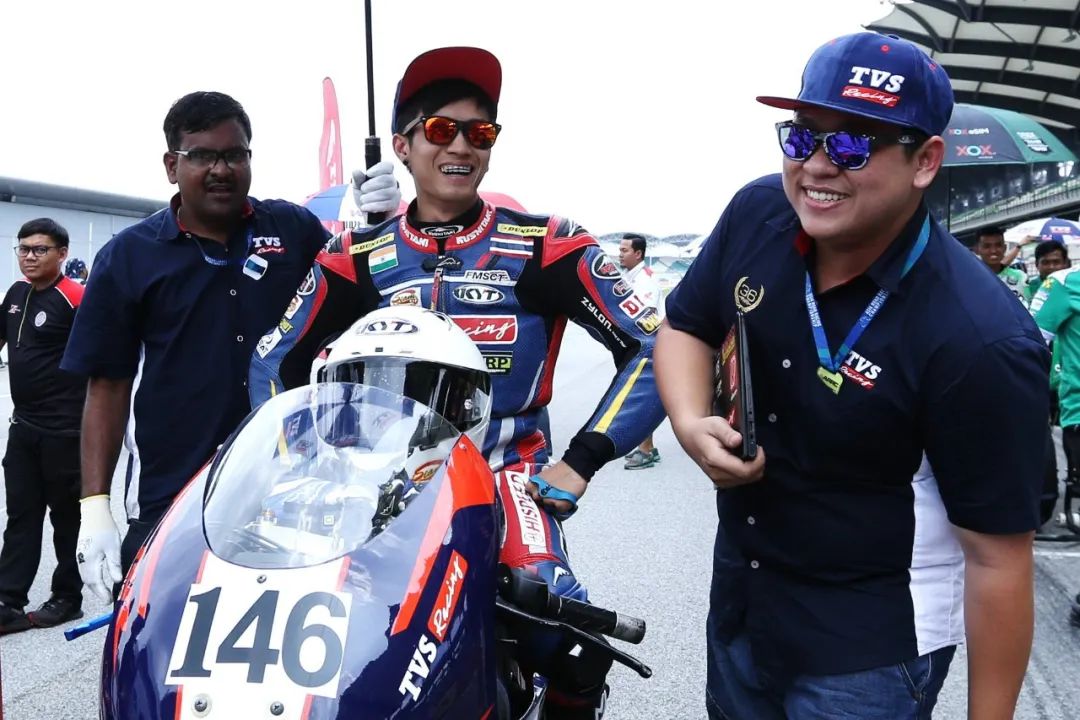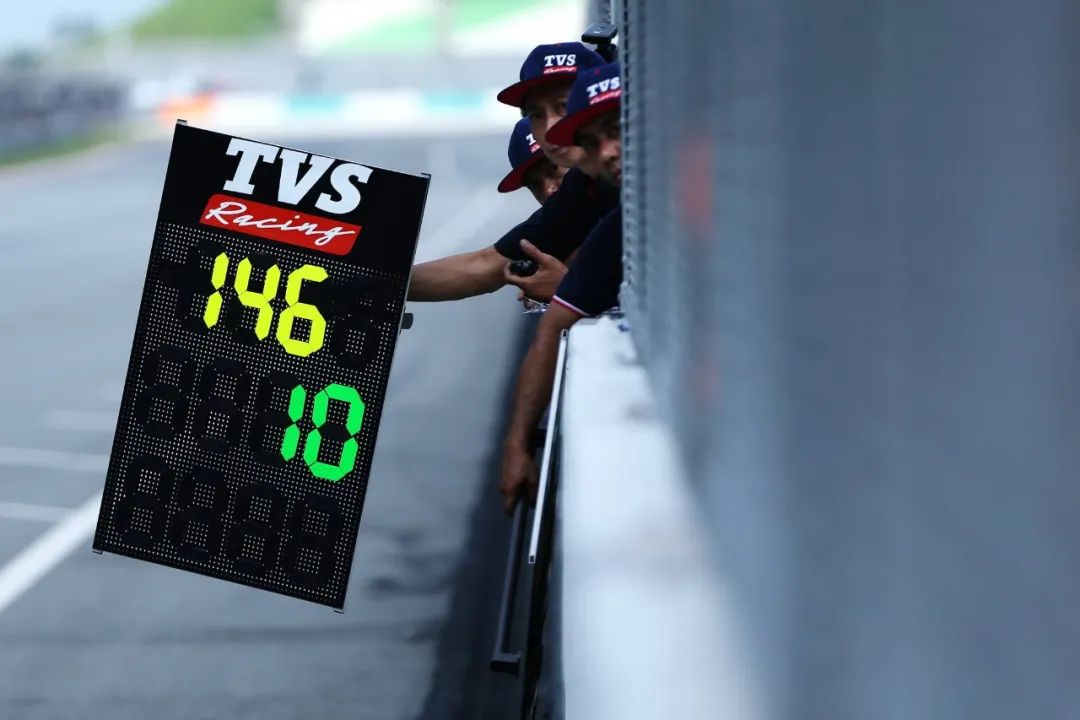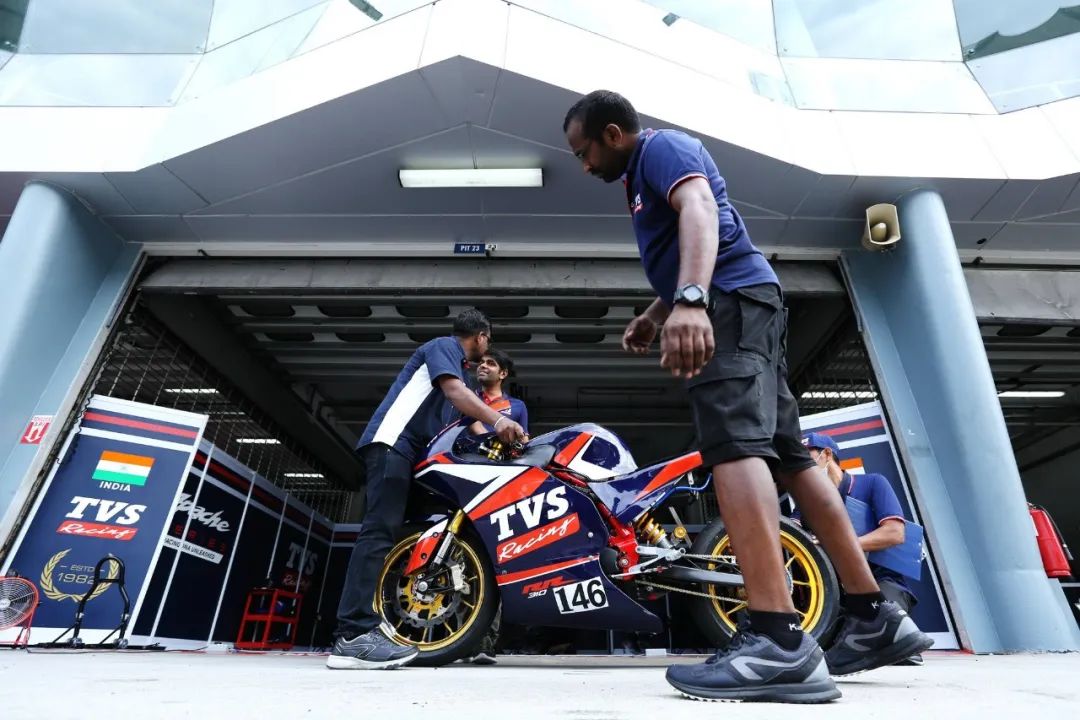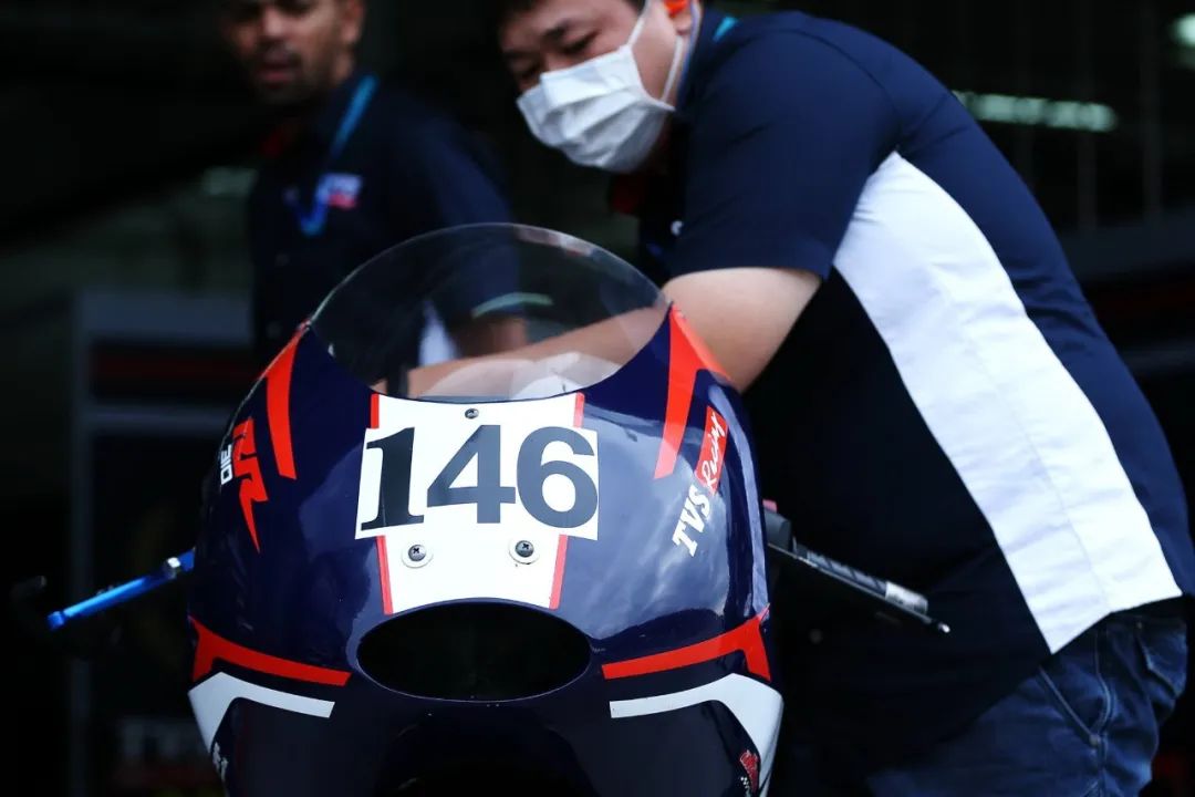 以工廠車隊角色參賽的 TVS,車手組合是兩位來自印度的車手、一位來自泰國的車手。駕駛 146 號車的泰國車手 Vorapong Malahuan,在兩節(jié)比賽中都能全程緊貼第二集團(tuán),并跑出了 2 分 27.611 秒的最佳圈速(頭車的最佳圈速為 2 分 25.601 秒)。