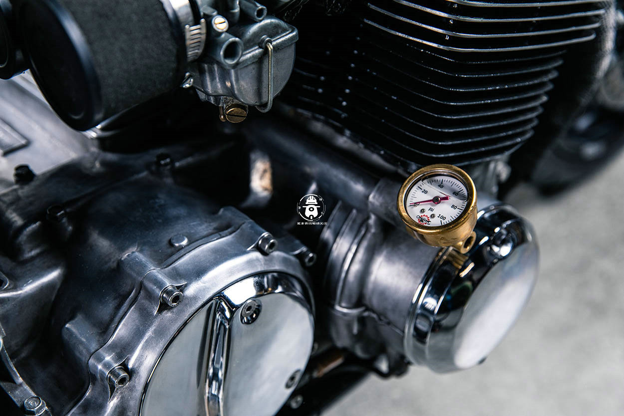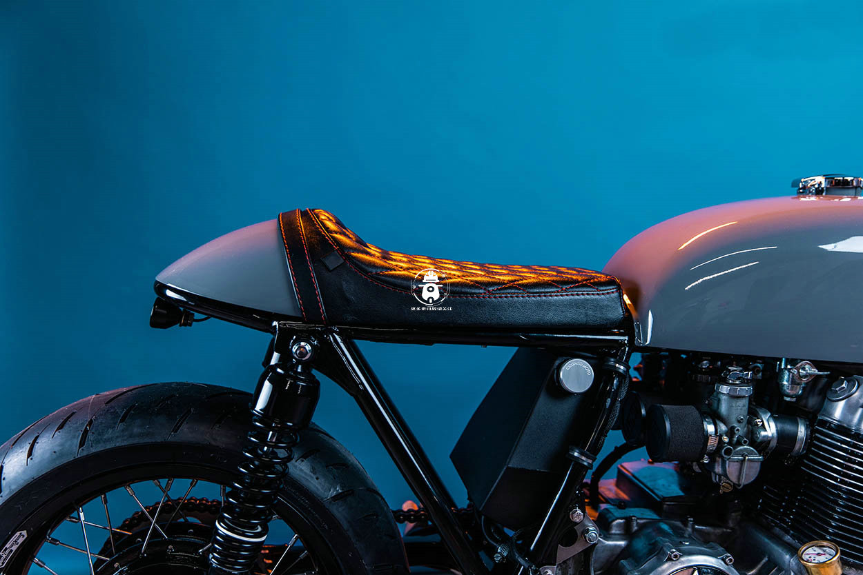 Nick Hooper也撕破了電線,放棄了老的線束對其進行篡改,新系統(tǒng)由一個Antigravity鋰離子電池組成,謹慎地藏在定制的座墊下方。避震方面Nick Hooper將前端換成一組鈴木GSX-R叉,后避震器比原車的要長一英寸,使CB更具攻擊性。