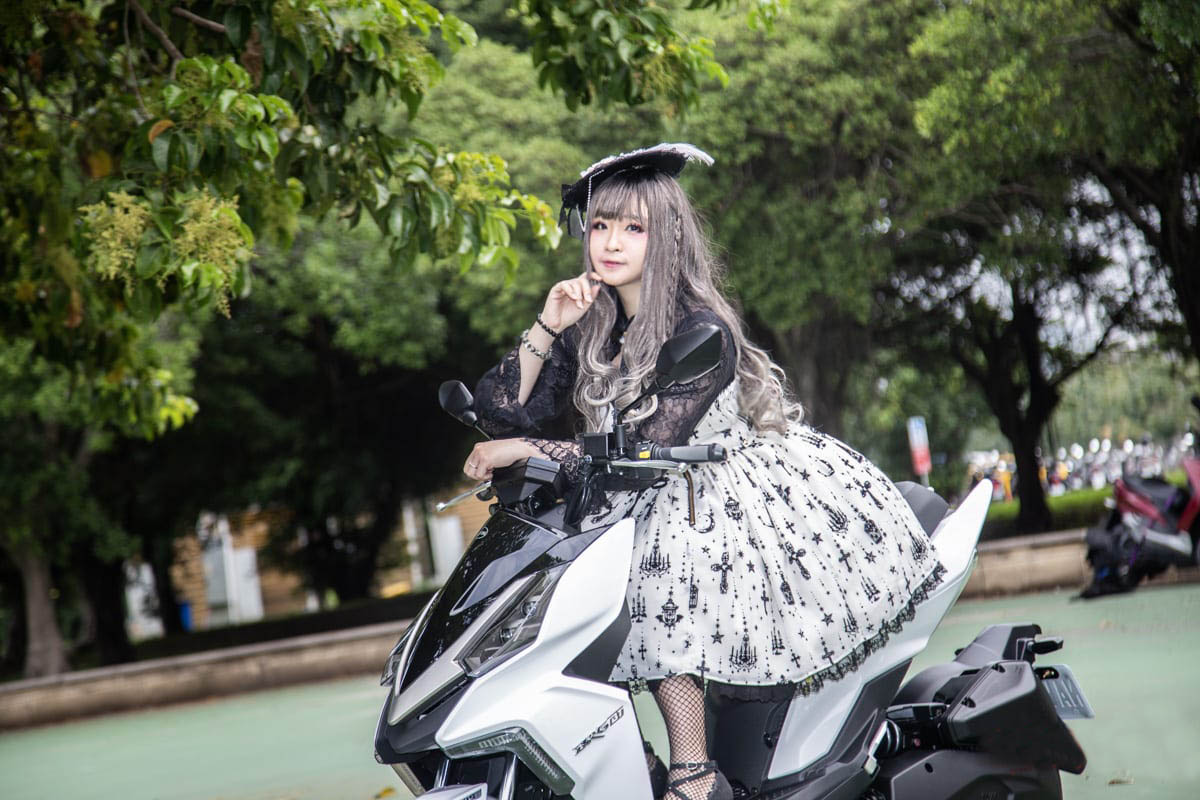 喜愛拍照的車主因車友的推薦,參加了SYM DRG登峰「照」集比賽,不知道哪來的沖勁,報名后的那天就在構(gòu)想怎么搭配車子還有拍照的地點,而且車主喜歡Lolita的風格,所以衣服和配件也花了不少心力來搭配,很享受這個過程。雖然照片只得了第二名,但因為有很多朋友跟不認識的車友幫忙分享,讓車主的人氣是遠超于第一名的。