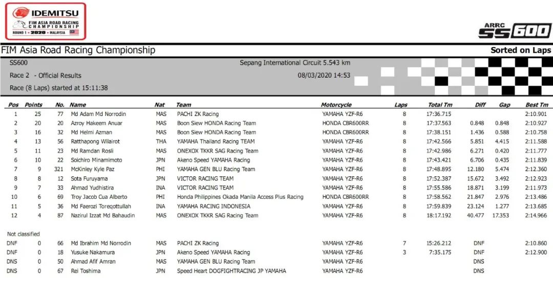 FIM 2020' ARRC(Asia Road Racing Championship,亞洲公路錦標賽)揭幕戰(zhàn),三月 6 - 8 日在馬來西亞 Sepang 雪邦賽車場舉行。