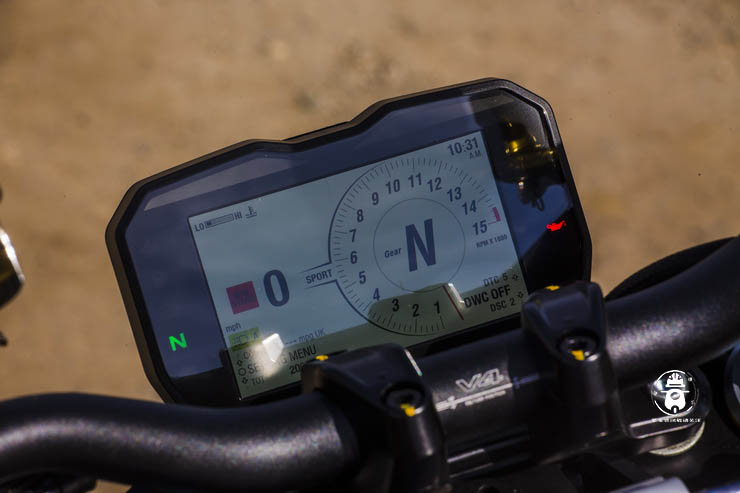 倍耐力的Diablo Rosso Corsa II是原廠輪胎的絕佳選擇,它們可靠,用途廣泛,可以快速預(yù)熱,并且在抓地力不太好的地面上也能有效發(fā)揮作用,在進行試乘期間,它們在路面上表現(xiàn)出色,并被證明是Streetfighter的完美搭檔。