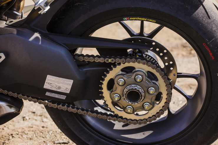 因此杜卡迪為它配備了大量的電子輔助設(shè)備,以此來降低它的駕馭難度,畢竟超過200匹馬力的街車,如果205bhp / 123Nm你都嫌不夠用,那么可以多花4,300英鎊擁有賽車排氣,能夠獲得額外的12bhp馬力,最大輸出可達到217bhp,而且車重會減輕5.5kg。