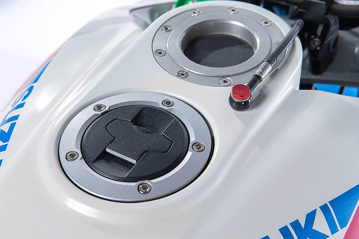 設(shè)計(jì)團(tuán)隊(duì)使用了與老款Katana相似的一些顯著特征,包括通過(guò)油箱上的雙燃料口進(jìn)行加油。但是通常情況下,這種改變涉及到切割,研磨等一些工藝,好在是Katana 1000R油箱由塑料制成,所以非常容易完成這個(gè)操作。