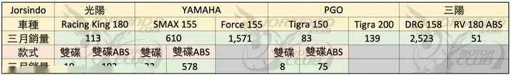 臺灣省2020年3月150mL~200mL熱門踏板車型銷量