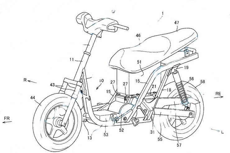 這里會有什么專利?這些文件實際上是關(guān)于車架布局和壓制鋼零件的增強的細節(jié),據(jù)稱它們以最小的復(fù)雜性和最小的成本提高了剛度,但是由于電氣部件的布局是摩托車設(shè)計的關(guān)鍵,因此無法掩飾它。