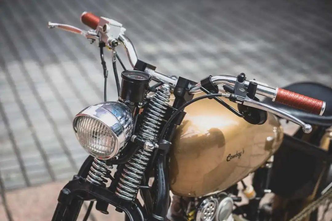 如果你熟悉老英國(guó)車,肯定認(rèn)出了這個(gè)油箱正是源自于60年代的TRIUMPH,而這部車也正是因?yàn)榕渖狭诉@組彈簧前叉和輪廓維持原貌的油箱,再加上單缸引擎的配置,因而讓它在外觀上多了一分Vintage TRIUMPH的味道!