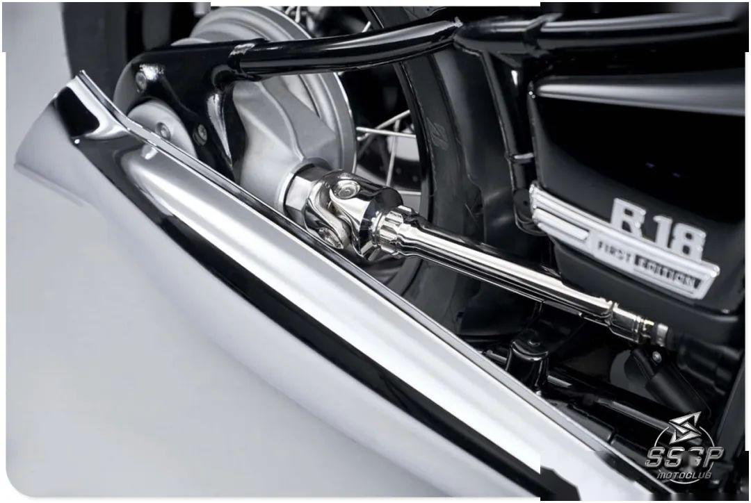 采用雙環(huán)式的鋼管搖籃車架,正是經(jīng)典元素的傳承,碩大的水平對臥引擎置于其中,也一如既往的簡潔而有力。即便車身全采用金屬車殼,但極簡的經(jīng)典外型設(shè)計(jì),使 R18 仍維持在 345kg 的裝備重量,以巡航車來說尚稱輕盈,比起大多美式巡航車款或 HonDA 的 Goldwing 更輕上了 30 余公斤。