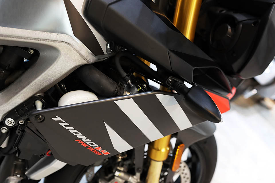 Tuono V4作為RSV4的衍生車型有兩個(gè)型號(hào),分別是Tuono V4 1100 RR及Tuono V4 1100 Factory,F(xiàn)actory版本是Tuono V4的頂級(jí)車型,無(wú)論是配置和價(jià)格都要高過(guò)RR車型。