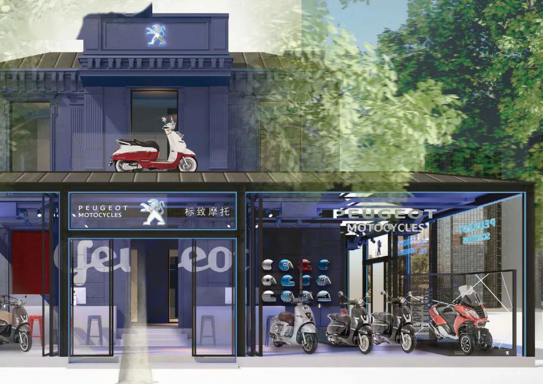 現(xiàn)在,標(biāo)致摩托形象店越來越多的出現(xiàn)在各大城市:室外是全電鍍獅子商標(biāo)和文字標(biāo)識,展現(xiàn)出標(biāo)致摩托科技精品、銳意進取和汽車基因的現(xiàn)代風(fēng);室內(nèi)為藍色背景墻上白色古體PEUGEOT、紅藍相間的吊燈、水泥灰色的地板、紅藍相間的金屬座椅,蘊含了標(biāo)致摩托古樸、悠久、懷舊的濃郁復(fù)古風(fēng)。內(nèi)外形象緊密呼應(yīng)、相得益彰