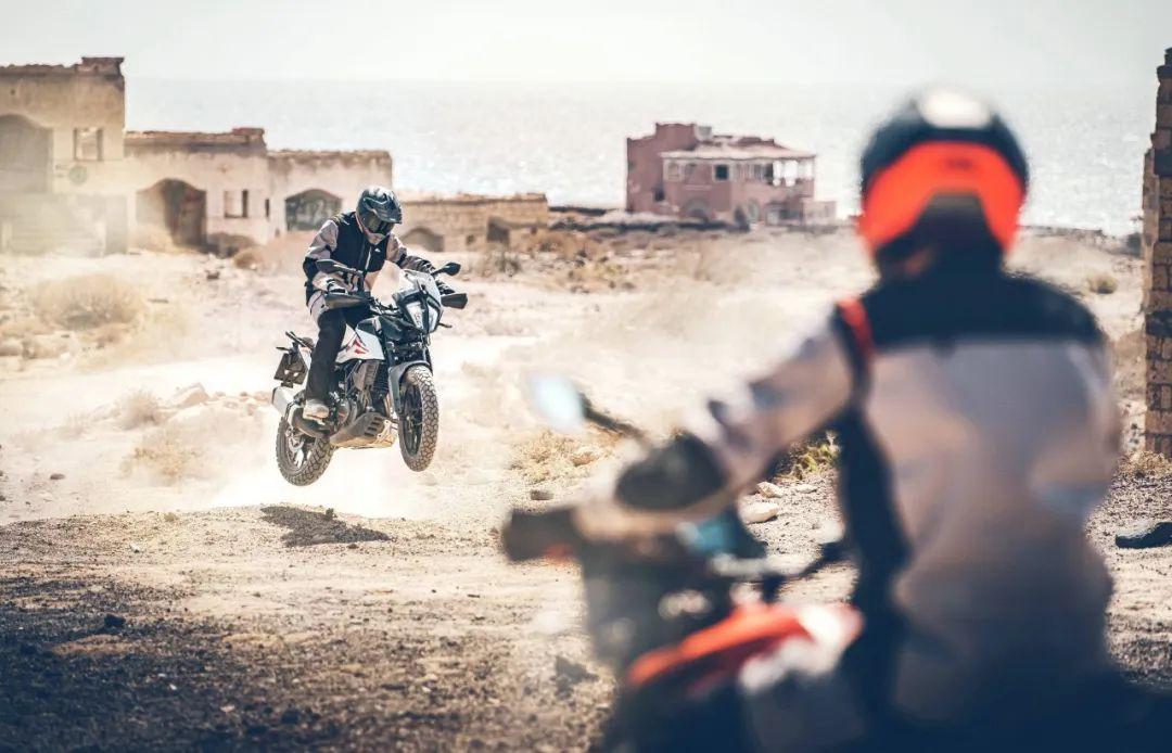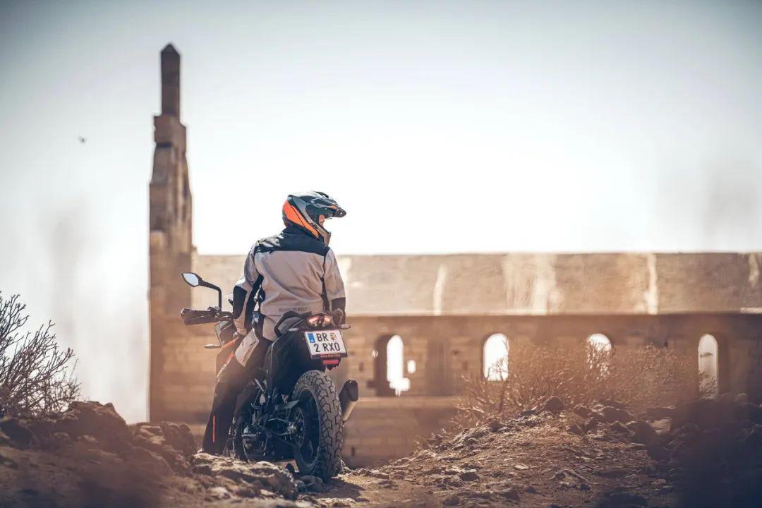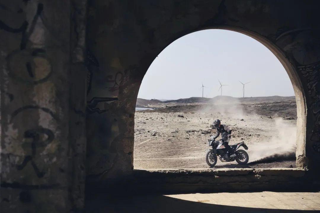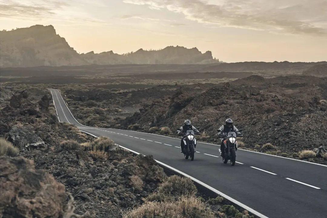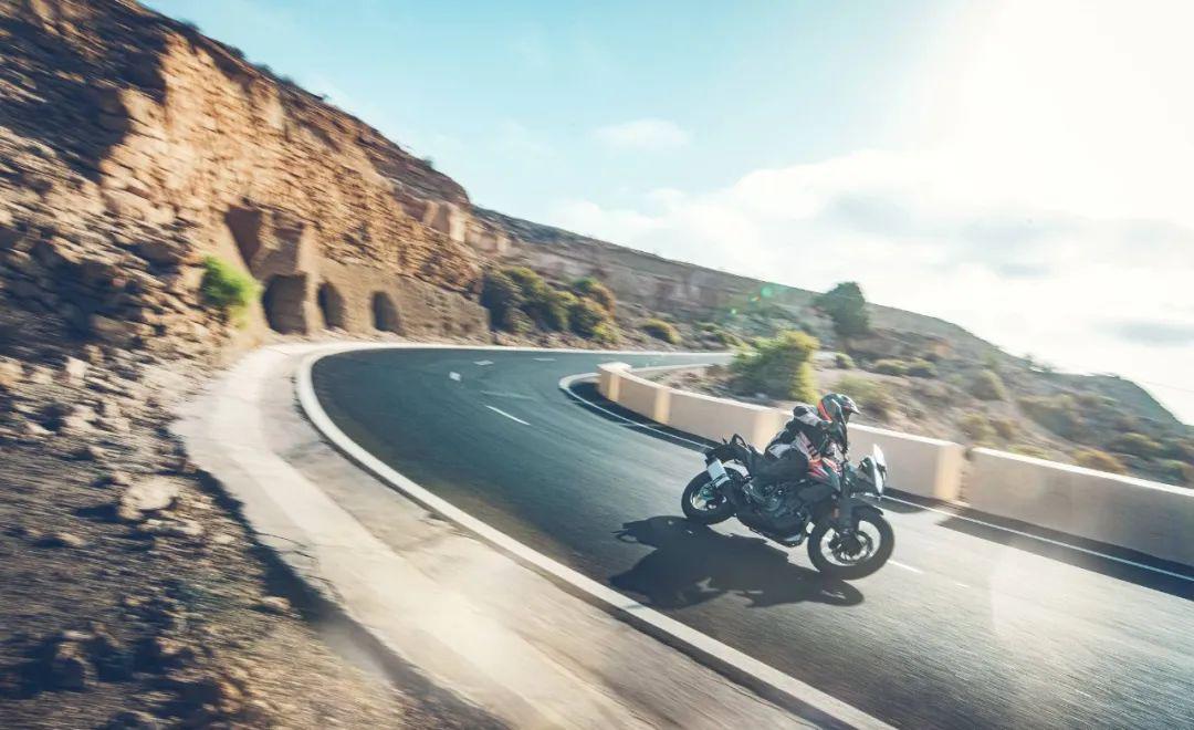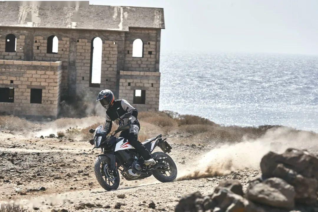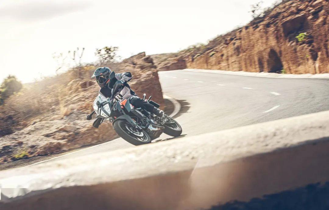 下面的圖片,KTM 390 Adventure 的在常規(guī)公路以及野外的非鋪裝路面上飛馳的特寫。