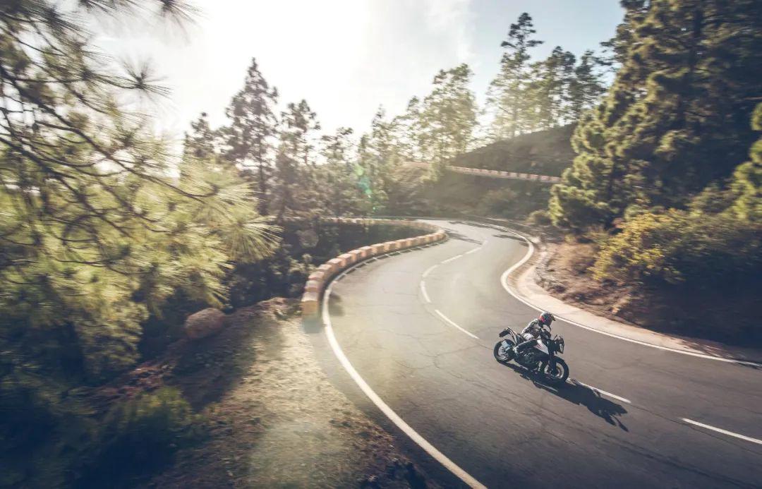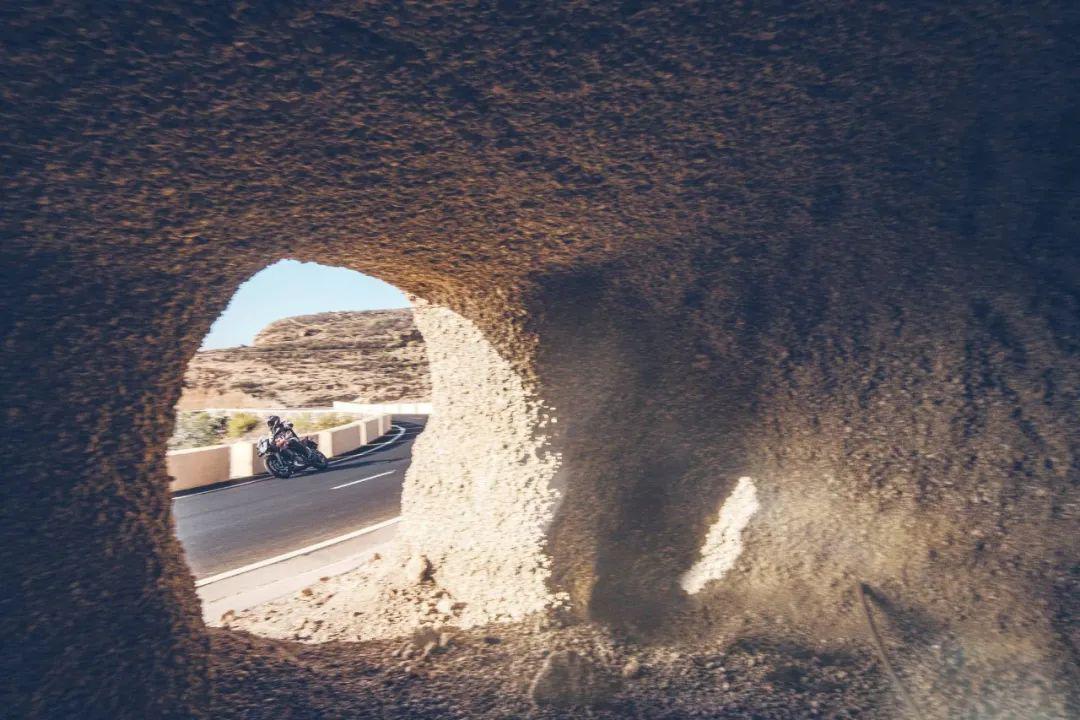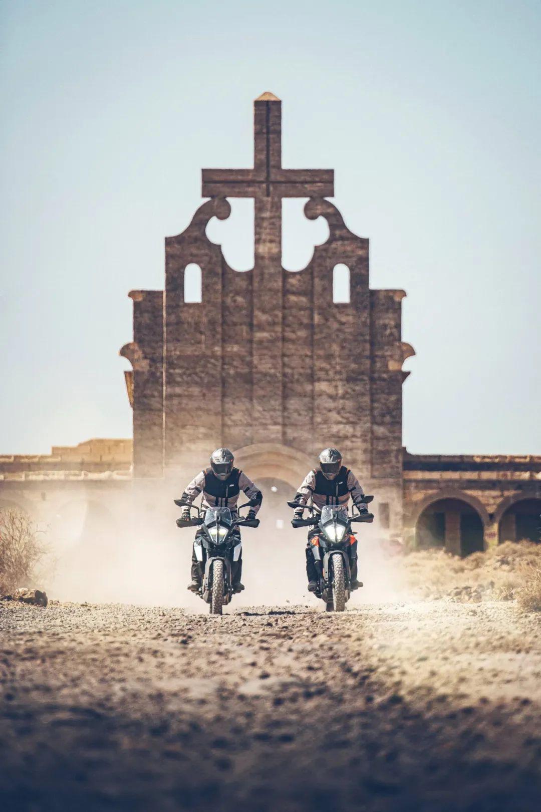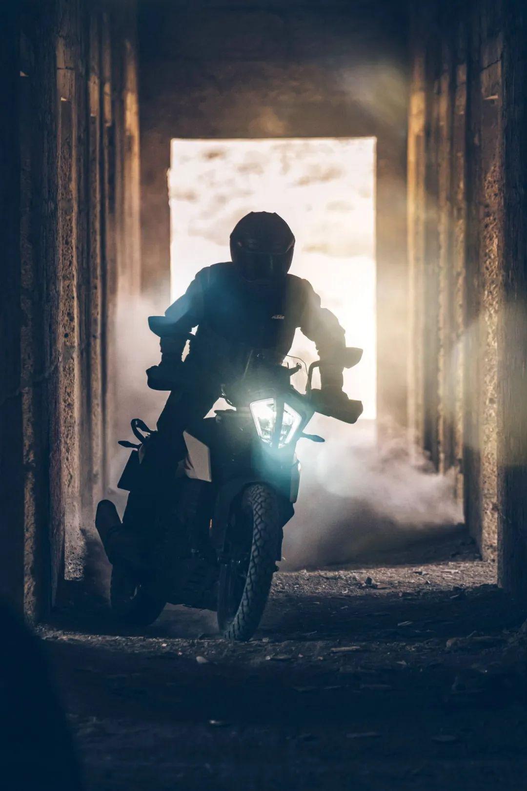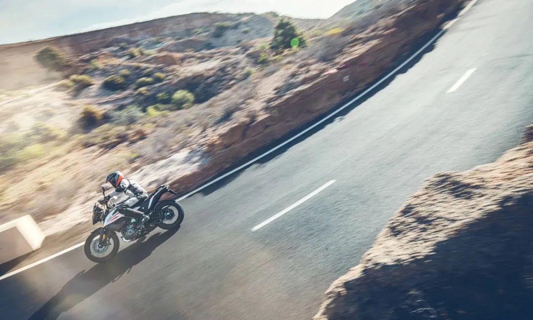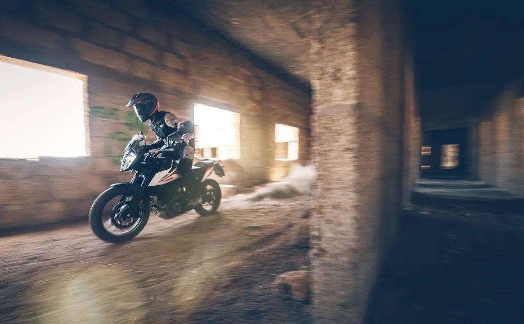 下面的圖片,KTM 390 Adventure 的在常規(guī)公路以及野外的非鋪裝路面上飛馳的特寫。