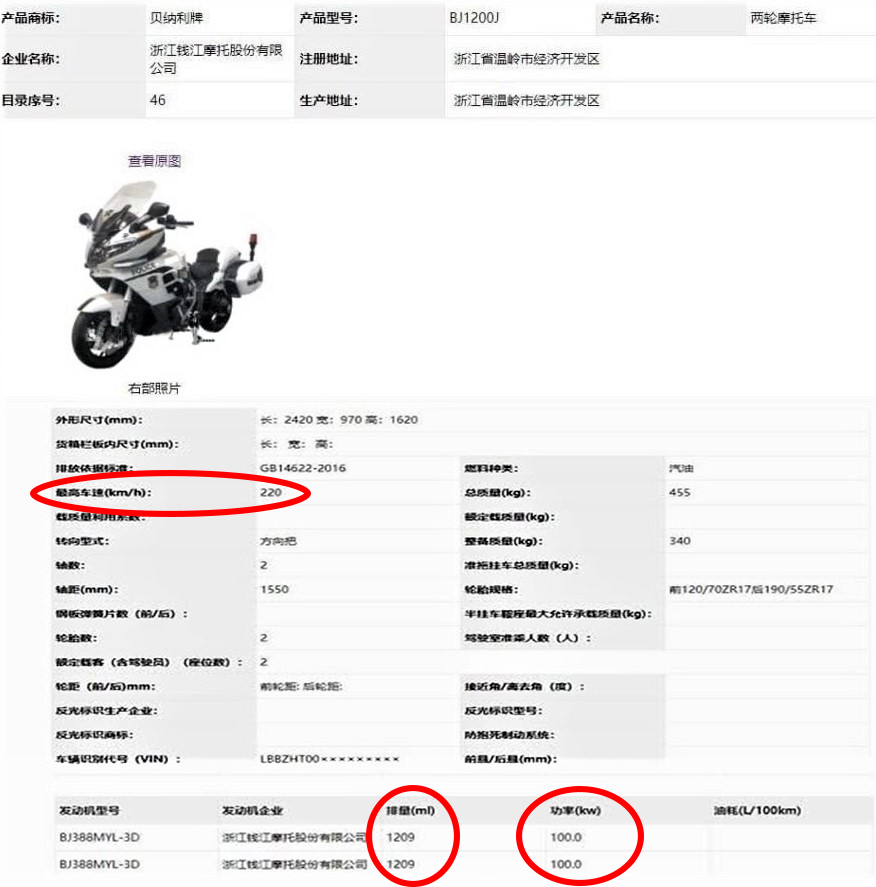 據(jù)悉BJ1200J的發(fā)動(dòng)機(jī),是以貝納利舊的1130cc三缸發(fā)動(dòng)機(jī)為基礎(chǔ)開發(fā),該發(fā)動(dòng)機(jī)曾為貝納利Tre、TreK和Tornado提供動(dòng)力。這臺(tái)1290cc的發(fā)動(dòng)機(jī),能產(chǎn)生100kw(136ps)的最大功率,要比春風(fēng)1250j的1278.8cc排量,105kw(142.7ps)略遜一籌。申報(bào)信息顯示,貝納利BJ1200J最高車速可達(dá)220km/h,對(duì)于一臺(tái)旅行車而言足以。