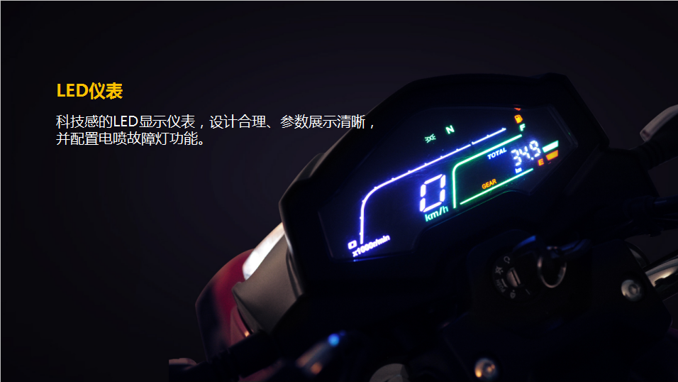 在官方的宣傳組圖中可以看到,廠家還是比較有誠(chéng)意的,更是加入了LED彩色儀表,碟剎制動(dòng)裝置,先進(jìn)的車架成型焊接工藝,汽車級(jí)的烤漆工藝,從內(nèi)到外徹底升級(jí)。