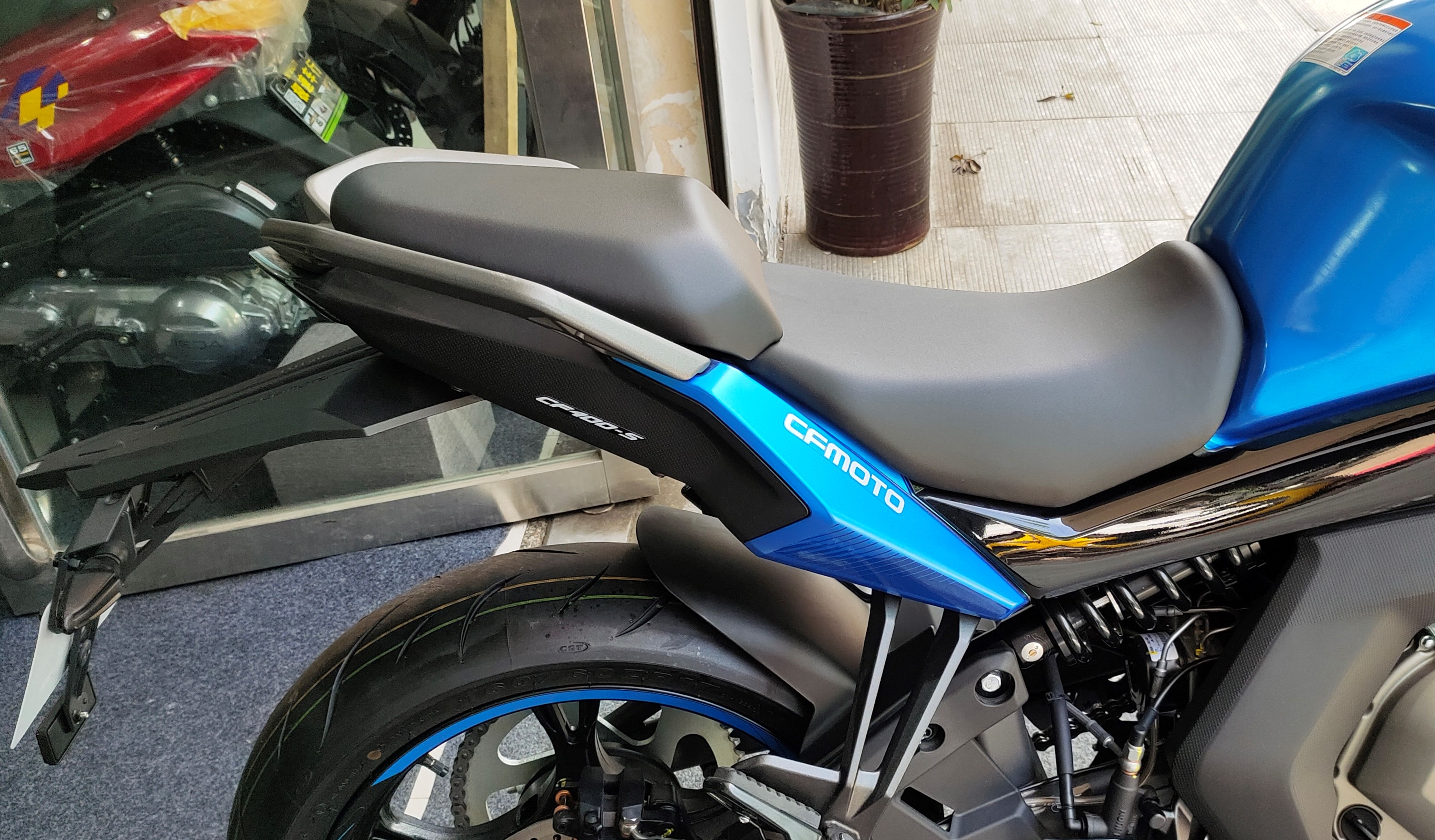 GT車型作為主打長途騎行的車款,在坐墊上肯定會下足了功夫,400GT的坐墊比起400NK厚了不止一點半點,分體式的后座在一定程度上充作腰靠支撐的作用,而且后座有外露的扶手,無論是加邊箱還是捆綁行李,載人載物都不用想街車那么尷尬。