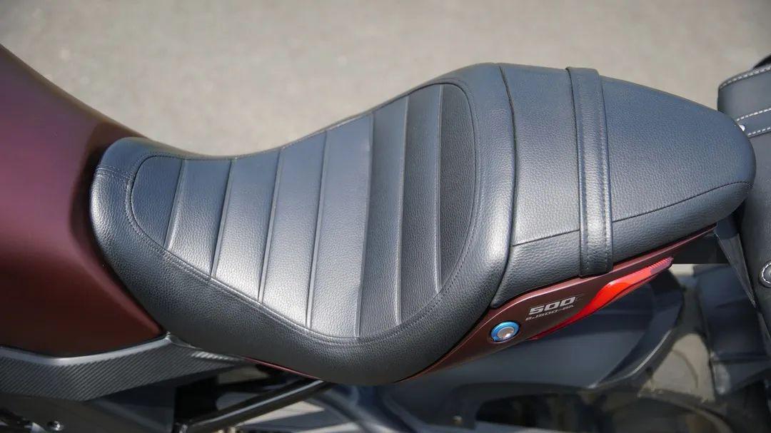 主駕坐墊寬大、厚實(shí)、柔軟,后腰位置還有支撐設(shè)計(jì),這種坐墊并不利于運(yùn)動(dòng)騎行的身體荷重,但對(duì)于一款街道巡航車(chē)來(lái)說(shuō)就是兩個(gè)字:舒服!~后座就不太友好了,面積小、坐墊硬、沒(méi)有后側(cè)扶手,可能設(shè)計(jì)師認(rèn)為巡航車(chē)不應(yīng)該經(jīng)常雙載吧!