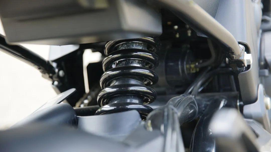 車(chē)輛使用中置式后減震,帶有預(yù)載可調(diào);前側(cè)使用粗壯的倒置式減震。在低速平整場(chǎng)地測(cè)試階段,會(huì)感覺(jué)減震比較硬,但駛?cè)虢值篮?,中高速?gòu)?fù)雜的街道路面后才感覺(jué)...街道應(yīng)該這樣的減震效果!只要你不是要去土路撒歡,這減震的表現(xiàn)相當(dāng)不錯(cuò)。