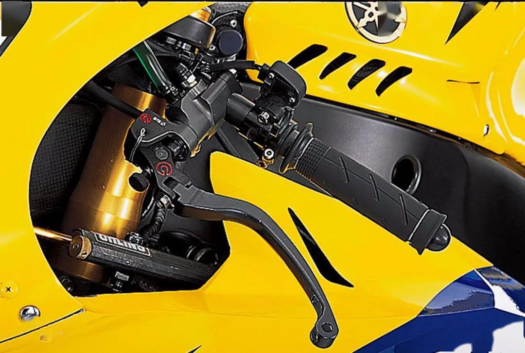 腳踏部分和現(xiàn)款差別不大,但在2006年YZR-M1已經(jīng)配備了電子快速換擋,而后制動桿被設(shè)計得非常短,為的是在右彎也能方便操縱后制動,如今越來越多的車手喜歡用拇指剎車來解決這一問題。