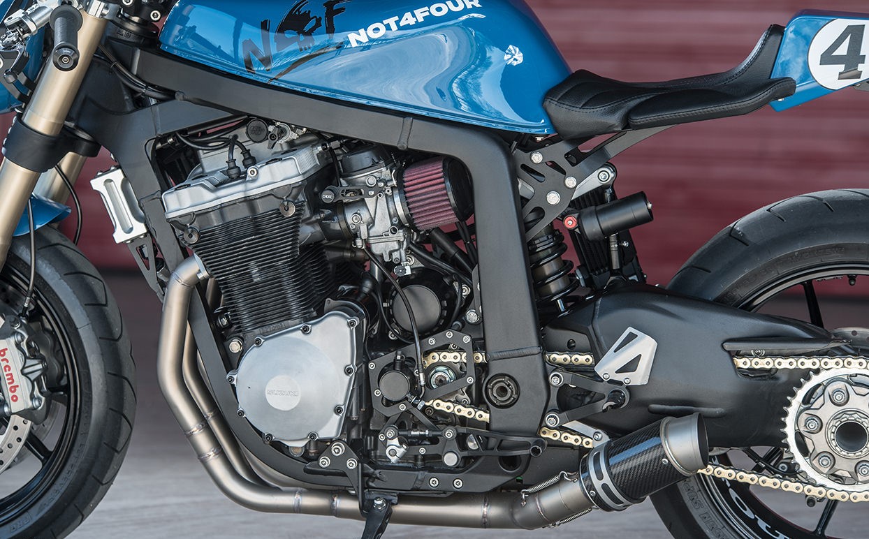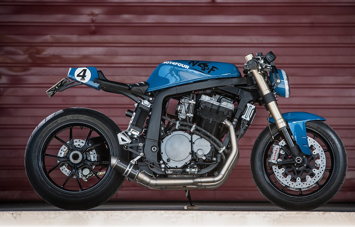 最終的風(fēng)格有點(diǎn)像混搭,融合咖啡廳賽車,街頭霸王和90年代運(yùn)動(dòng)摩托的元素。它的直列四缸發(fā)動(dòng)機(jī)可爆發(fā)出143hp馬力,比原裝的發(fā)動(dòng)機(jī)還要大。