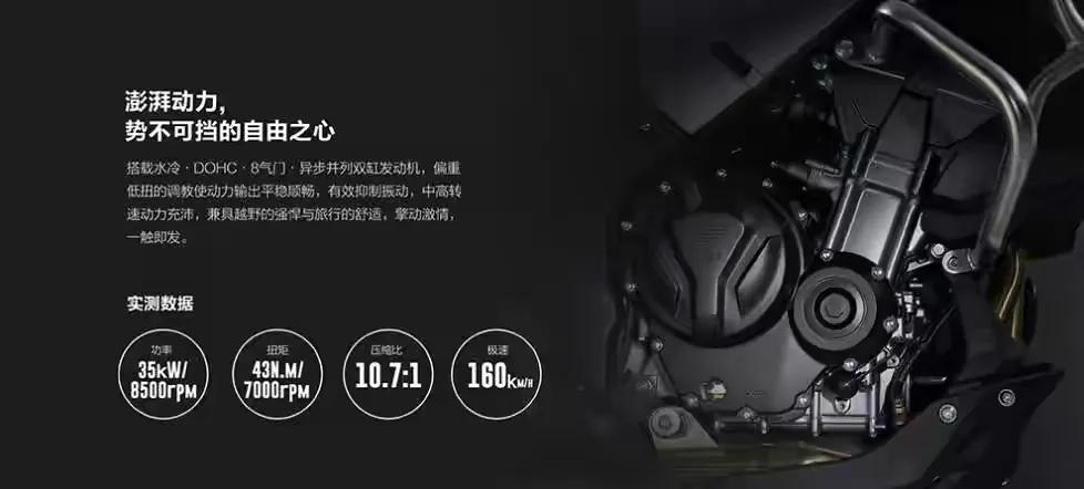 發(fā)動(dòng)機(jī)大家肯定不陌生,無極逆向研發(fā)本田的KE500發(fā)動(dòng)機(jī),也是各大廠家在500cc級(jí)別的首選發(fā)動(dòng)機(jī)。500cc雙缸水冷發(fā)動(dòng)機(jī),最大功率35kw,最大扭矩43N.m,最高時(shí)速160KM/h.這款發(fā)動(dòng)機(jī)非常成功,被廣泛的運(yùn)用到國內(nèi)各種街車、ADV上,成就了許多小廠,也造福了廣大車友。