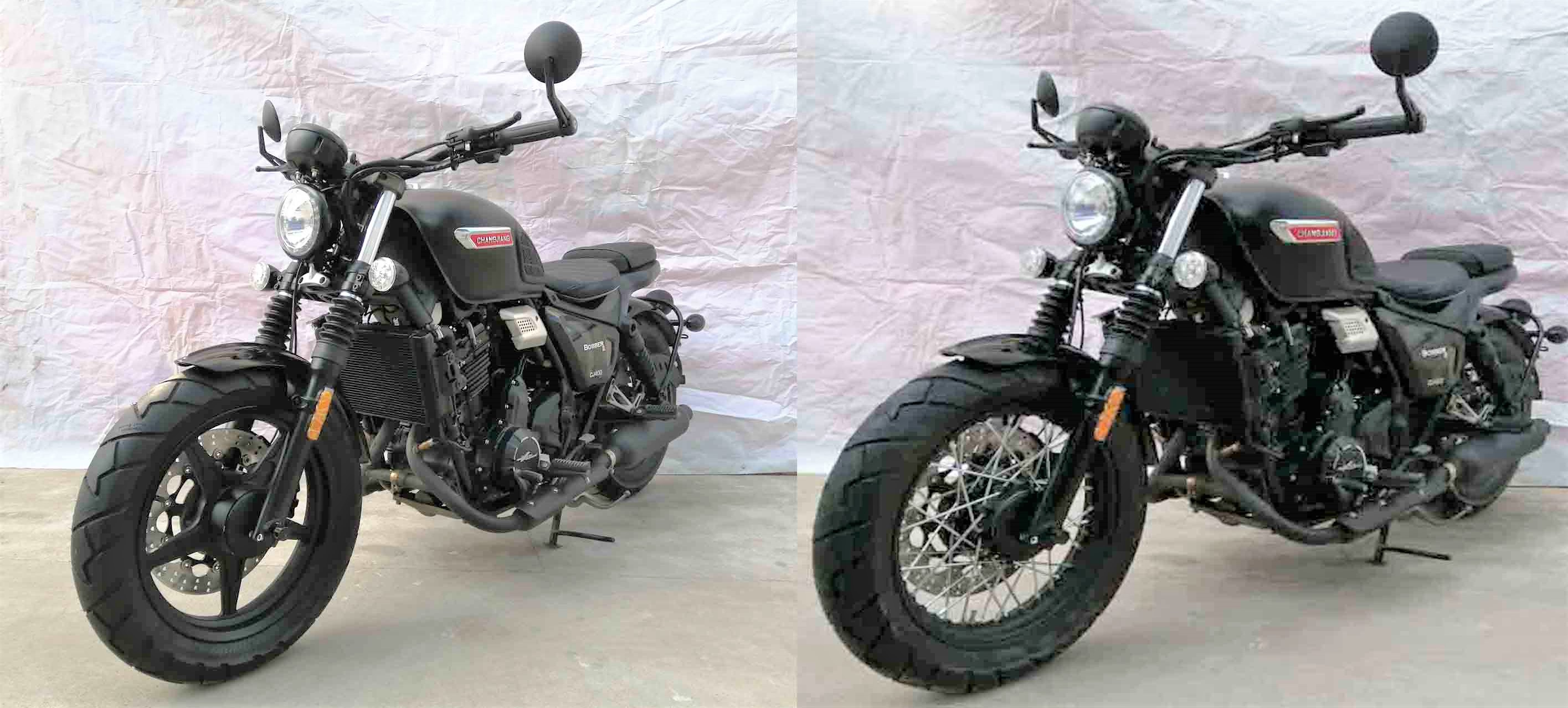 外觀就是拆了邊斗的侉子,動力采用的是春風(fēng)400NK的同款發(fā)動機(jī),輸出數(shù)據(jù)基本上保持一致。值得注意的是這臺車的重量達(dá)到了225kg的水平,對于一臺復(fù)古車型而言確實有些偏重,兩種不同輪轂版本條幅輪轂是選配,不過單就顏值來說的確十分吸睛。