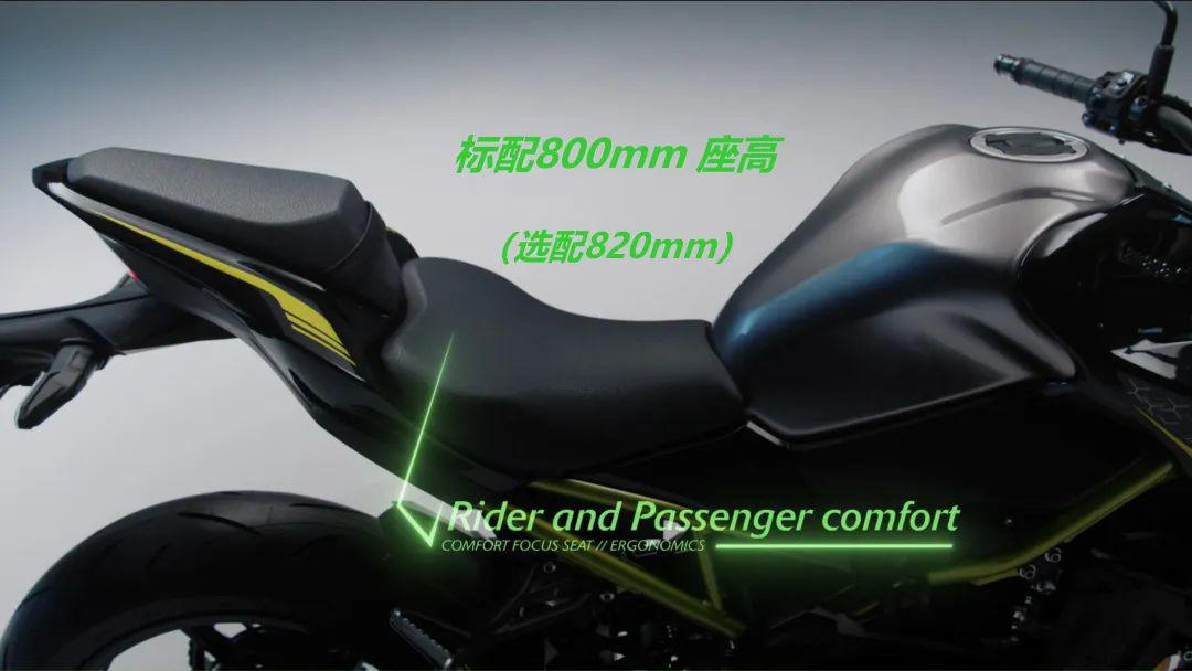 2020款 Z900 對新手來說坐高非常友好,標配坐高為800mm,也可選配820mm。