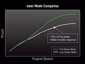 Power Mode動力模式:FULL/LOW 兩種動力模式選擇,其中F(全馬力)輸出100%的動力,L(低馬力)輸出75%的動力,在不需要激烈駕駛或新手駕駛時可選擇L模式。