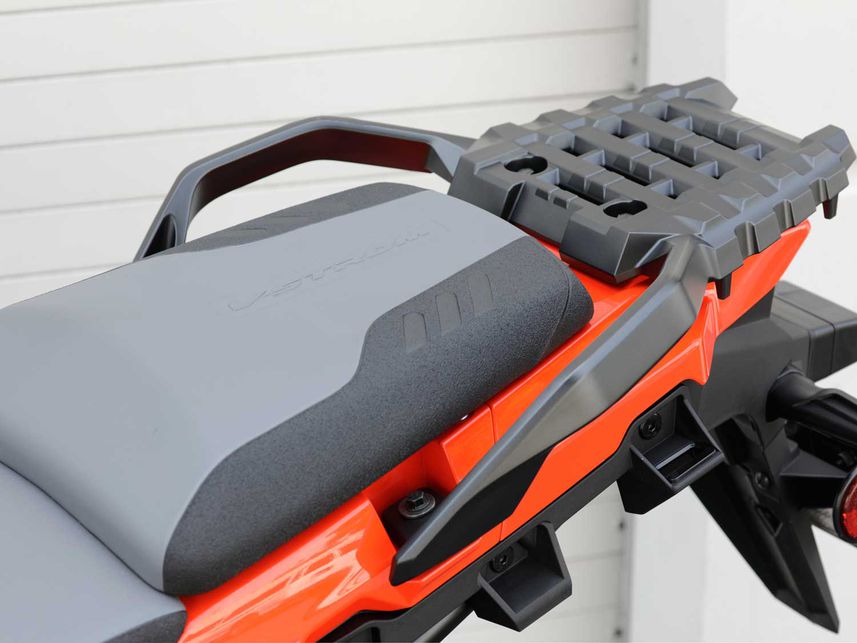 V-Strom 1050XT的坐墊是業(yè)內(nèi)最好的座椅之一。它相對較低(對于這種尺寸的摩托車),并且得到了很好的支撐,完美地融化了長途騎行帶來的臀部疲勞。乘客座椅的面積很大,另有非常結(jié)實的扶手和貨架,可以輕松固定行李箱。