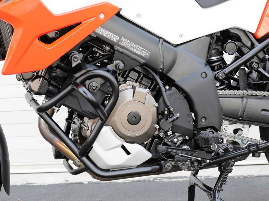 即使它已經(jīng)使用了23年,V-Strom的1,037cc V-twin仍然是出色的動力裝置。它具有充沛的動感,令人愉悅的聲音,并具有有趣的特征。(該發(fā)動機最初是為Suzuki的1997年TL1000S街車設(shè)計的),但仍然充滿了令人愉悅的扭矩。1,037cc V-twin是一款好玩的發(fā)動機,非常適合V-Strom的定位。它提供了更窄的車身,發(fā)動機幾乎全部裸露在外,非常方便日常的維護維修。