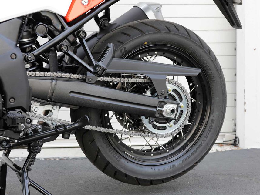 懸架可調(diào),因此你可以根據(jù)自己的喜好調(diào)整動作,OE配套的普利司通Battlax Adventure A41輪胎,在路面上具有出色的抓地力,鈴木的Motion Track ABS系統(tǒng)減輕了制動過程中的輪胎卡死現(xiàn)象。提供了兩個級別的ABS轉(zhuǎn)換,但是無法手動禁用系統(tǒng)。組合制動也是標準配置,并結(jié)合車輛位置(通過IMU)來調(diào)節(jié)制動壓力,它還為坡道保持控制系統(tǒng)提供動力(在上坡時會瞬間施加后制動器)。