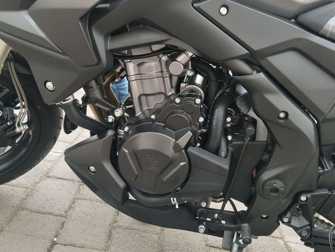 無(wú)極500R的核心部分,就是業(yè)內(nèi)大名鼎鼎的KE500異步雙缸水冷發(fā)動(dòng)機(jī),以本田CB500發(fā)動(dòng)機(jī)為藍(lán)本逆向開(kāi)發(fā),高度還原了本田獨(dú)有的排氣哨聲。最大功率35kW/8500rpm,最大扭矩 43N.m/7000rpm,5.1秒就能破百。配合來(lái)自博世的電噴技術(shù),擁有強(qiáng)勁動(dòng)力的同時(shí)還有出色的燃油效率。
