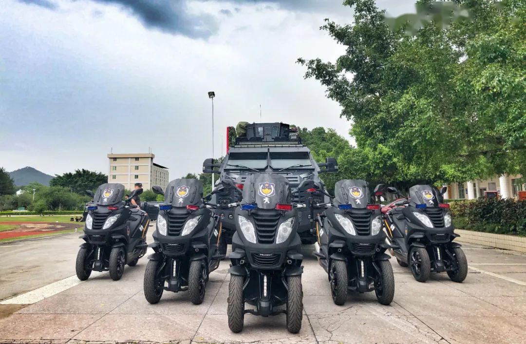 標(biāo)致METROPOLIS特警用車安裝了警燈、警報(bào)器、喊話器,每名特警隊(duì)員還配備了作戰(zhàn)裝備,可謂是全副武裝。