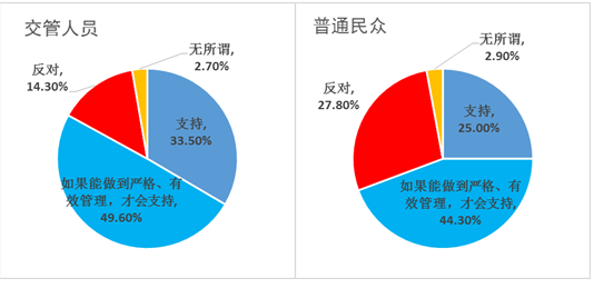 大比例受訪人員的意見為“如果能做到嚴(yán)格、有效管理,才會支持”,體現(xiàn)出較為“審慎”的態(tài)度/源自《中國摩托車商會關(guān)于探討改進(jìn)杭州市摩托車管理模式的調(diào)研報告》