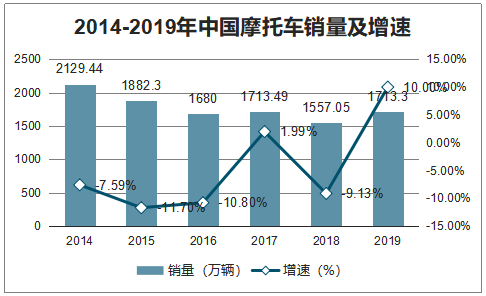 2014-2019年中國摩托車銷量及增速/源自中國產(chǎn)業(yè)信息網(wǎng)