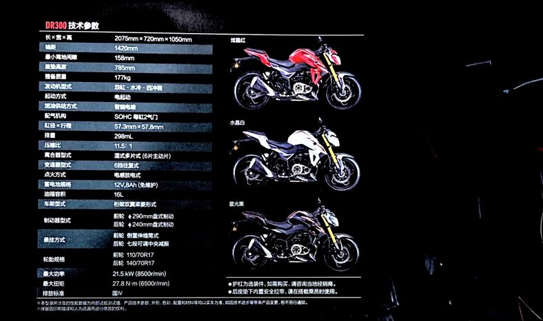 根據(jù)外媒猜測豪爵DR300,未來有可能以SUZUKI GSX-S300的型號進軍全球市場!豪爵DR300從外觀設(shè)計上依然能夠看到一些鈴木GSX-S家族的影子,在鈴木技術(shù)的加持下,借鑒一些優(yōu)秀的設(shè)計也無可厚非。