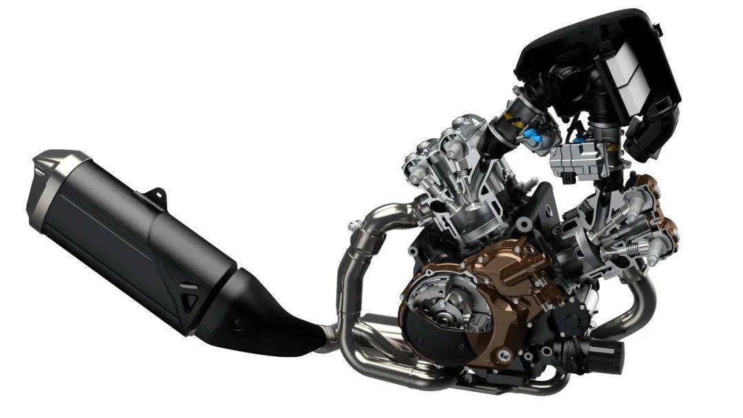 車(chē)體方面,有一個(gè)新的外觀造型,配備了一副闊面雙翼樑的車(chē)架,原來(lái)的圓形大燈、也被新設(shè)計(jì)的 LED 方形大燈所代替。電控系統(tǒng)方面則比 2019 款有了一個(gè)跳躍級(jí)的更新,配備了一套基于 6D IMU(六軸陀螺儀)的控制系統(tǒng),該系統(tǒng)集成了彎道 ABS、可選動(dòng)力輸出模式、牽引力控制、低轉(zhuǎn)速輔助、爬坡控制、巡航控制等,幾乎是全面化的電子控制設(shè)備。