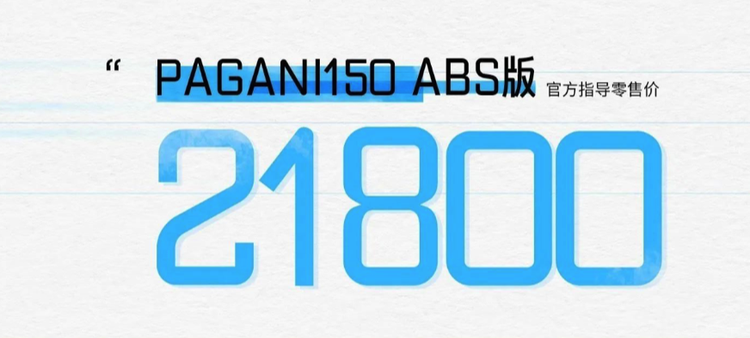 Pagani150售價21800元,比CR150的19800元售價有所提高,配置和動力方面幾乎保持一致,Pagani 150多了ABS,大包圍和“豬頭”,以及分體式手把也確實符合咖啡賽車的特色。