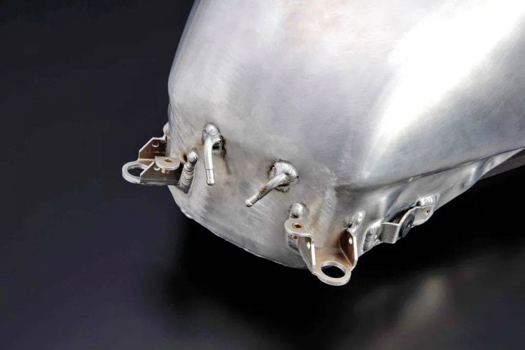 這款鋁合金油箱的開發(fā)目標是通過減輕高重心位置的重量、去為駕駛實現(xiàn)更佳的運動性。整件產(chǎn)品采用鋁合金材料、以手工制作而成,兩側(cè)以凸字的形式、展示吉村的標記(日語),表面的形狀與原廠油箱相同,且可直接使用原廠的油箱蓋、油泵、油箱支架以及螺栓等組件進行安裝。
