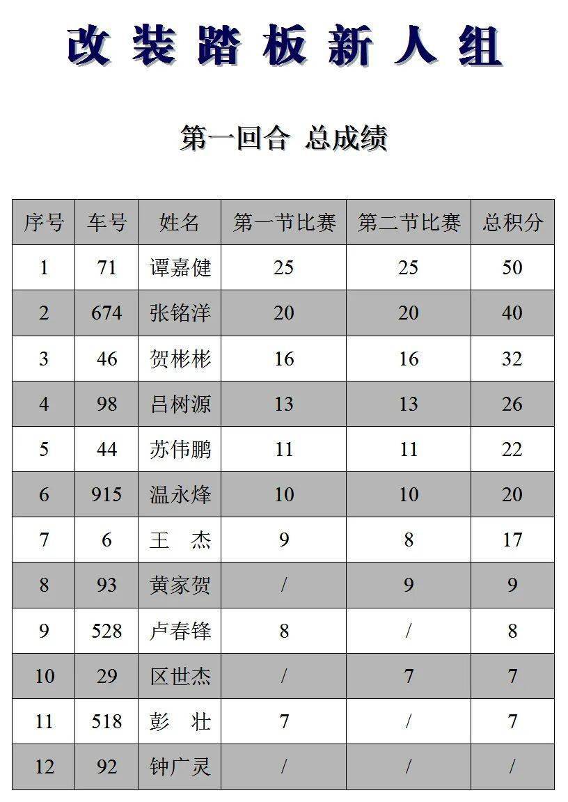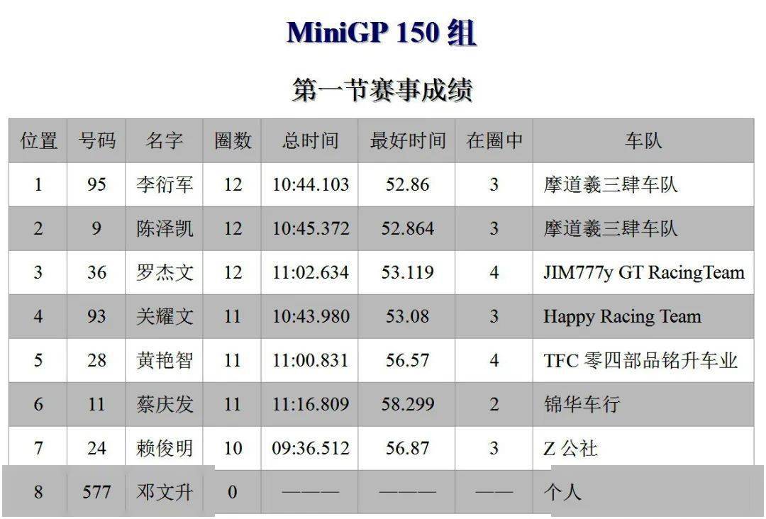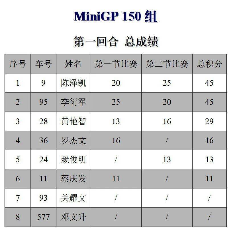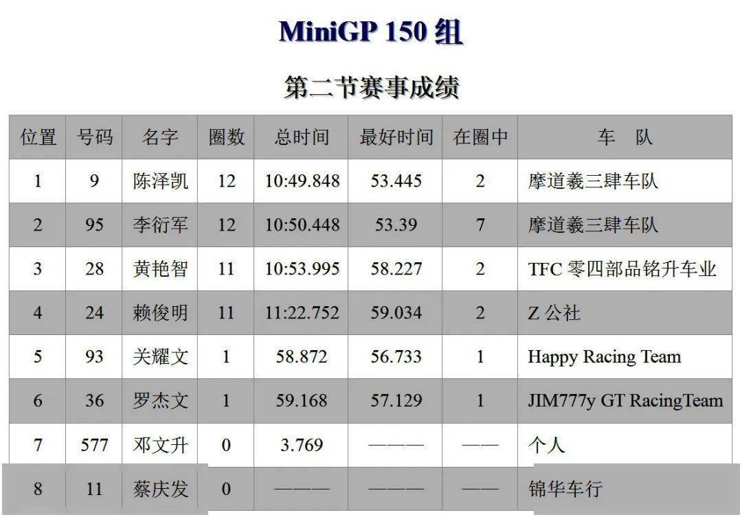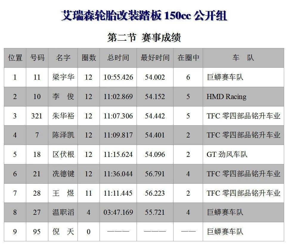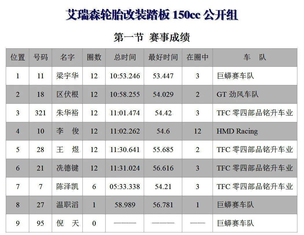 下面的圖片,艾瑞森輪胎改裝踏板 150 cc 公開組的比賽成績。