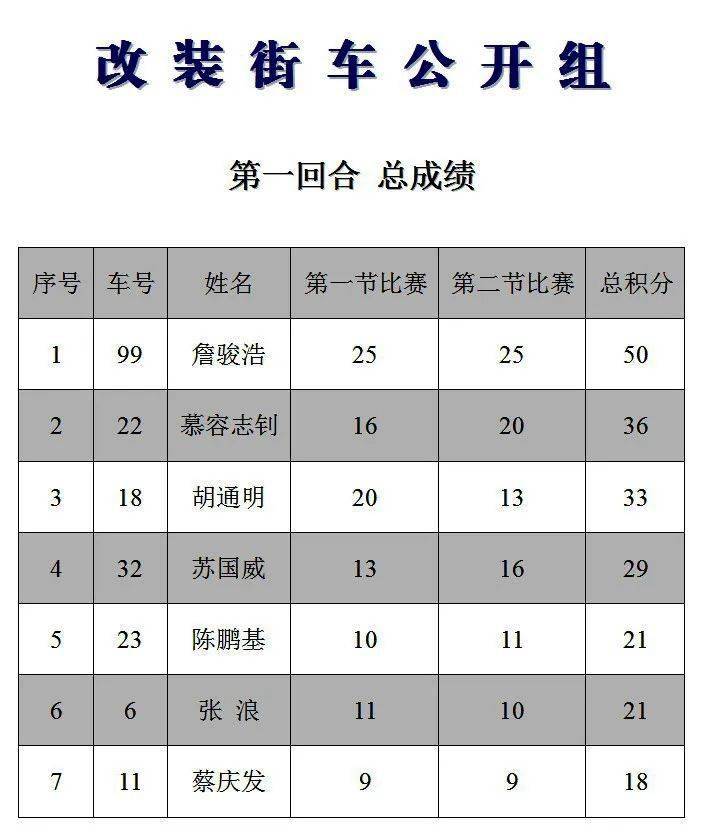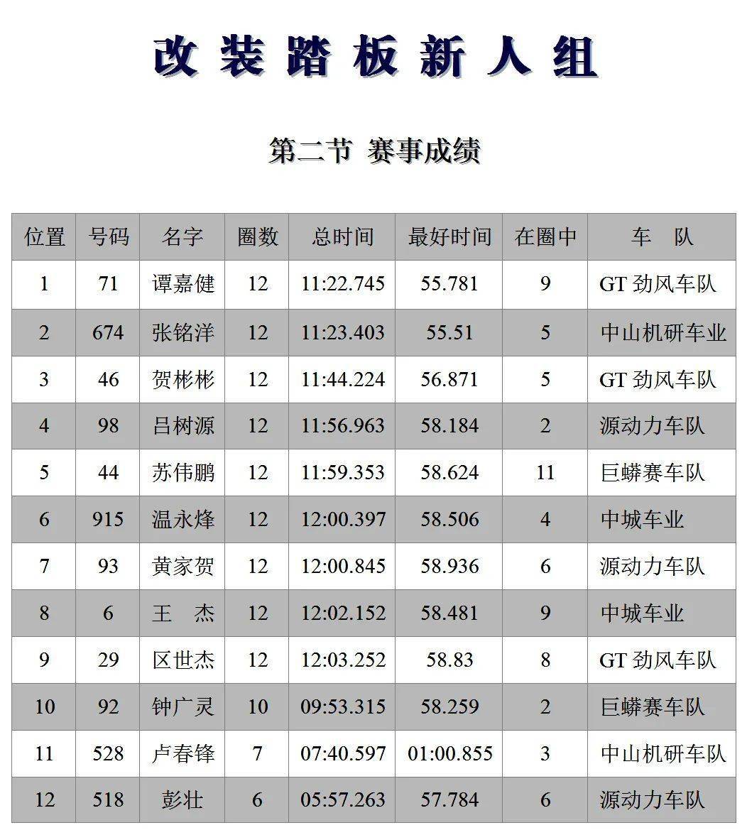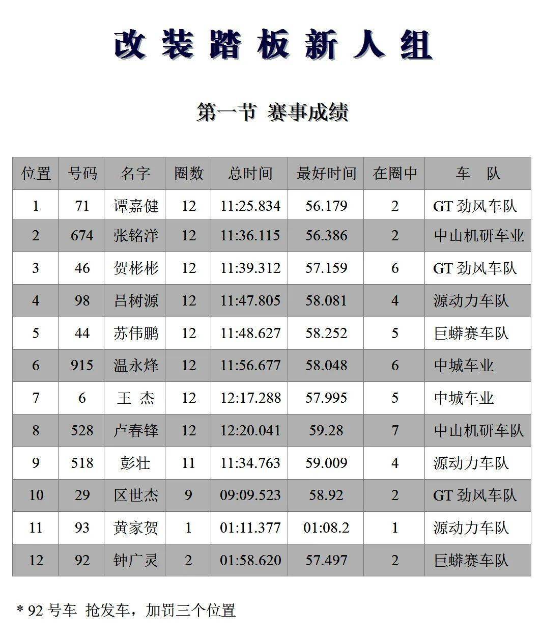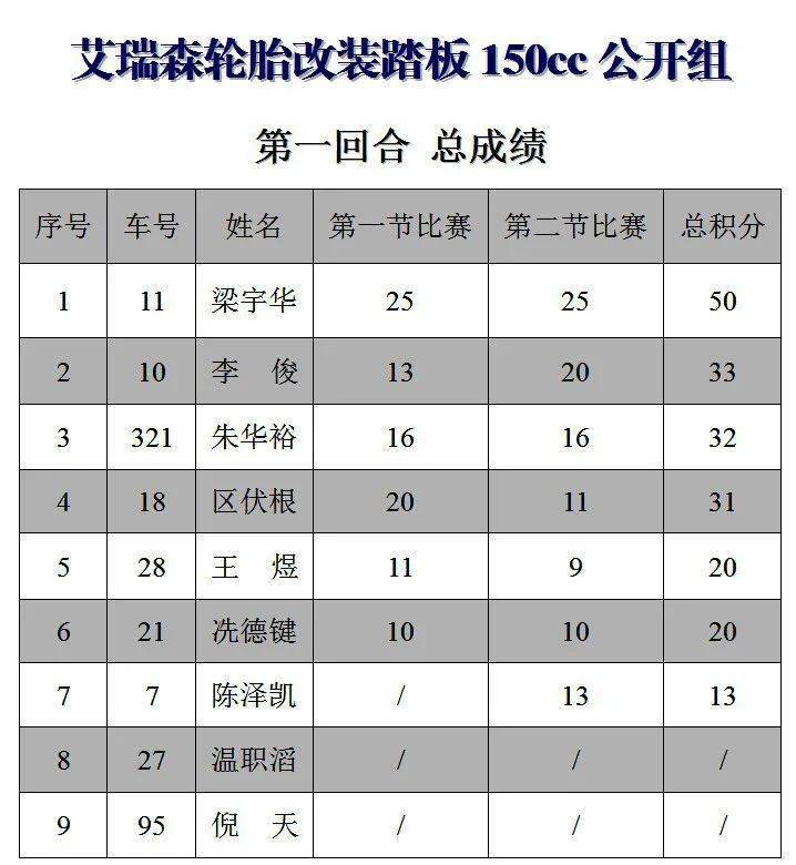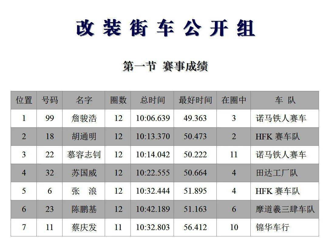 下面的圖片,艾瑞森輪胎改裝踏板 150 cc 公開組的比賽成績。