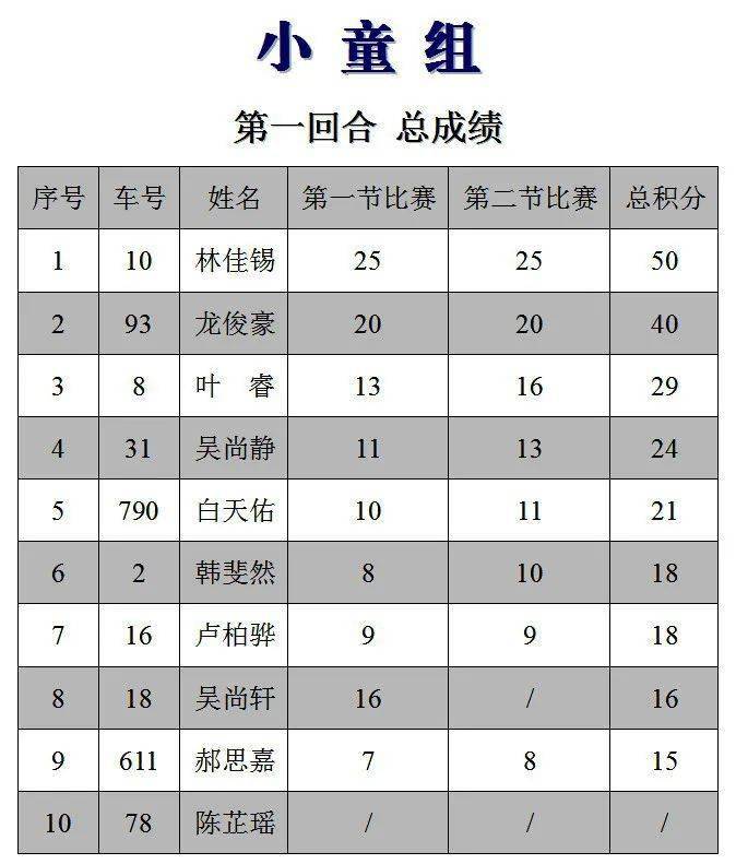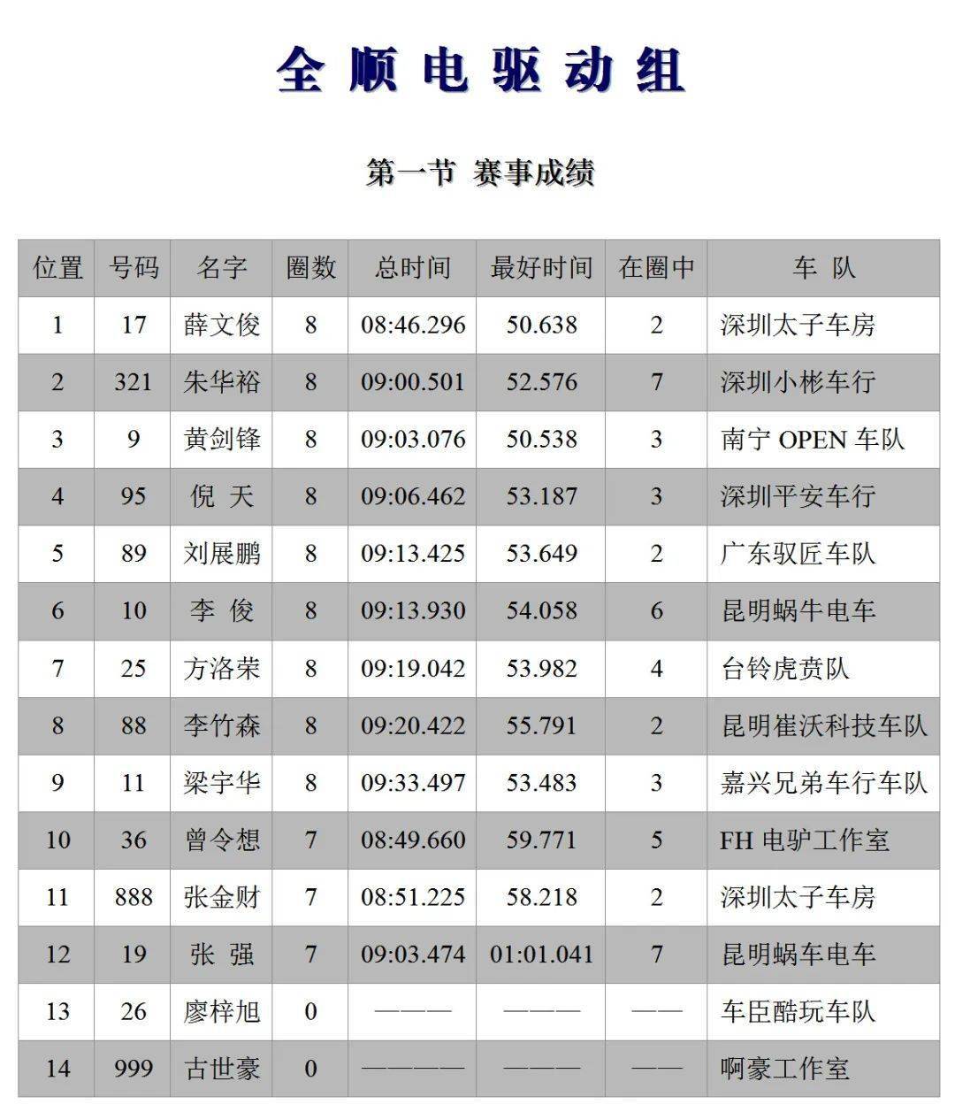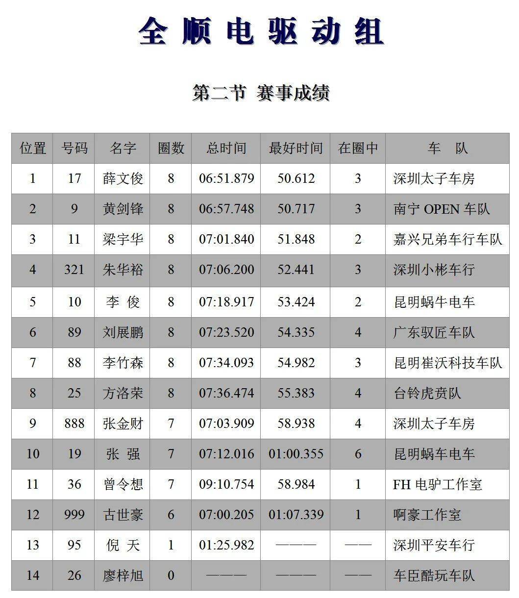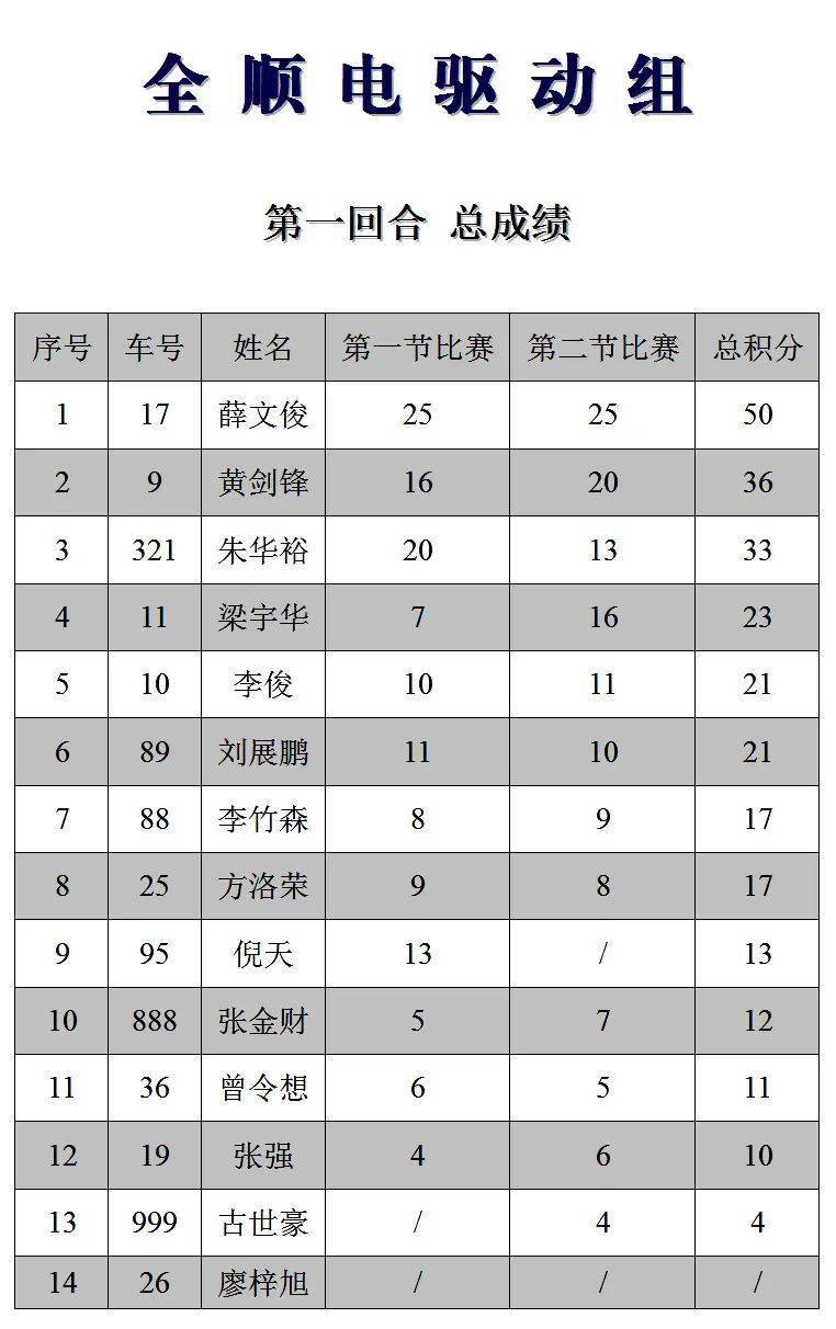 下面的圖片,全順電驅(qū)動組的比賽成績。