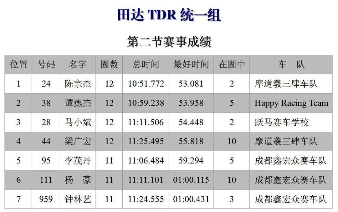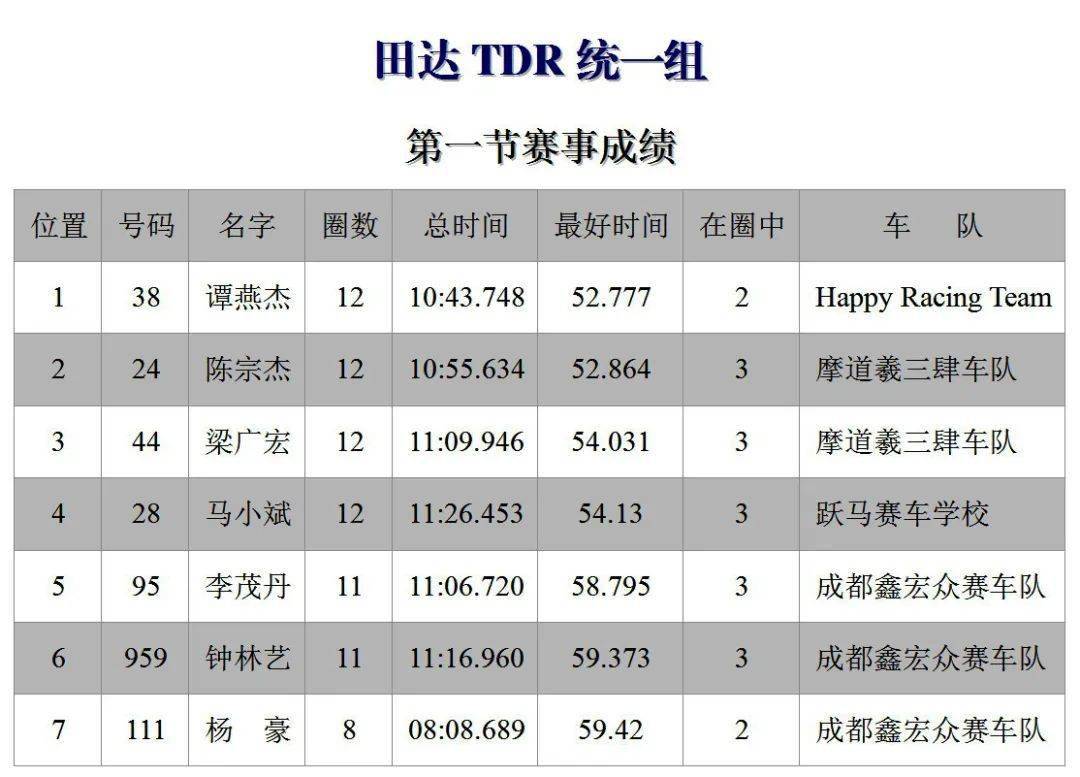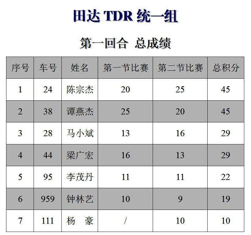 下面的圖片,田達 TDR 統(tǒng)一組的比賽成績。