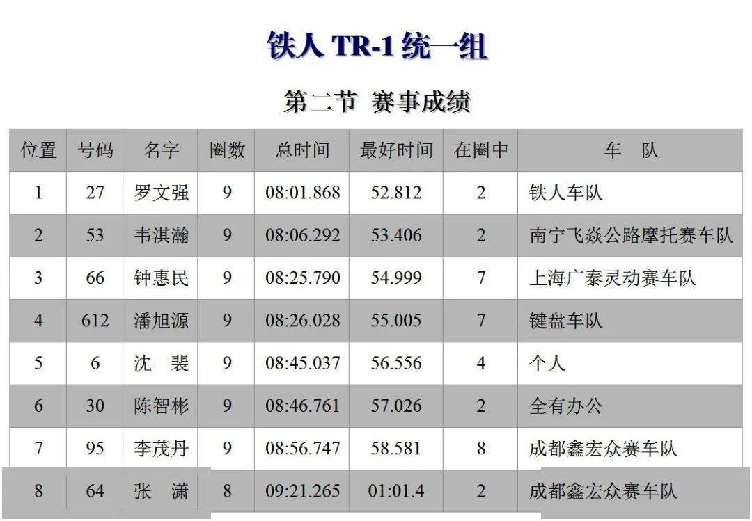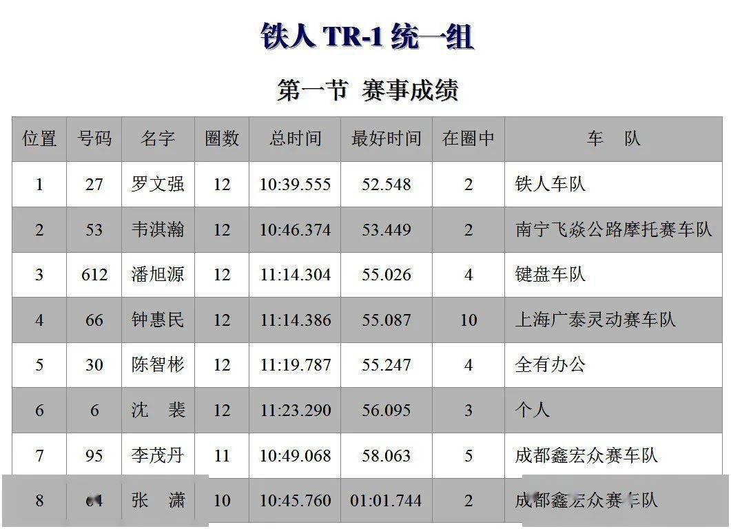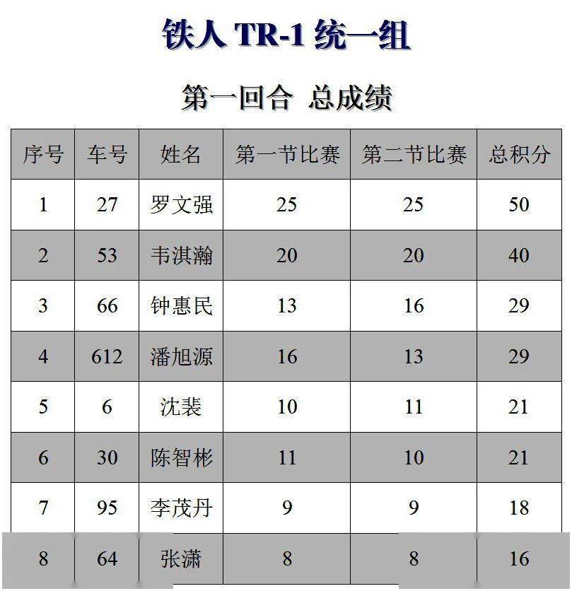 下面的圖片,鐵人 TR-1 統(tǒng)一組的比賽成績。