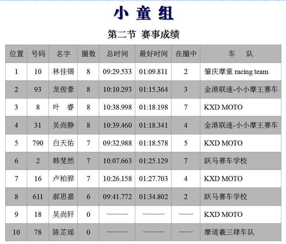 2020年三水偉業(yè)達杯摩托車大賽第一回合——賽事成績