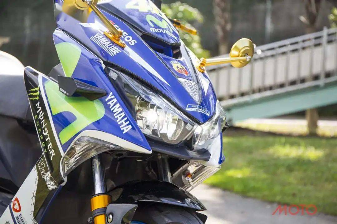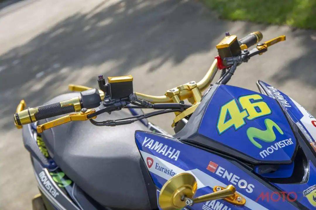 改裝最大的動(dòng)力就是喜歡Rossi,將他奉為偶像的車主James,首先就采用了2016年YZR-M1配色的全車貼膜。在車頭的部分大大的貼上46的號(hào)碼,顯示著向Rossi致敬的一輛車。