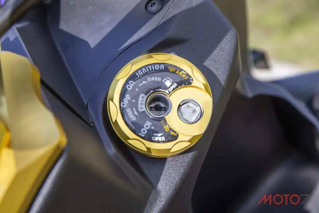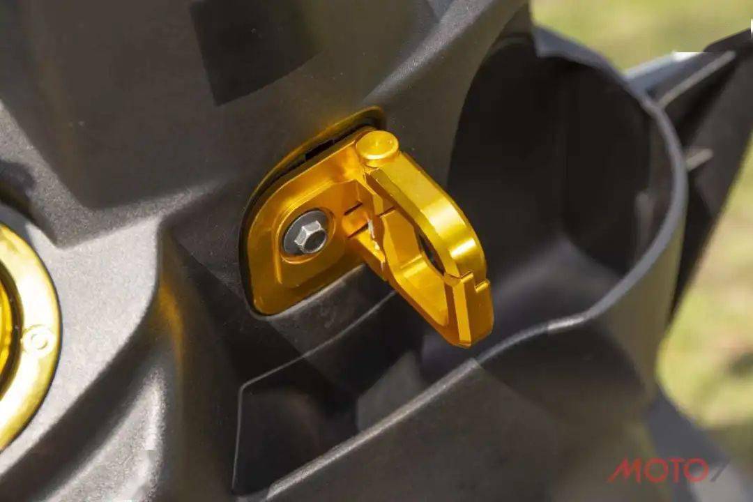 此外為了整體的和諧性,兩端的油杯也都換上金色的蓋子。與此同時(shí),油箱蓋也以金色的飾蓋裝飾,造型華麗許多,而磁石中控鎖也用上造型較為樸實(shí)的金色飾蓋,毫不掩飾地張揚(yáng)著那閃亮的光芒。