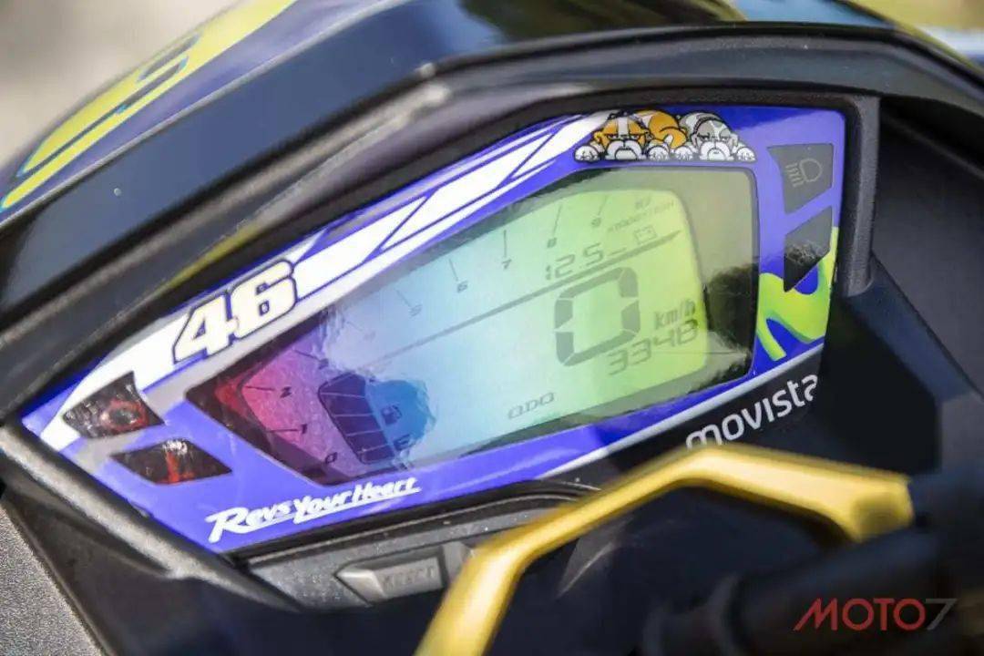 儀表的部份不僅有Rossi主題的貼膜,在儀表表面也使用彩色的貼膜,騷氣滿點(diǎn)
