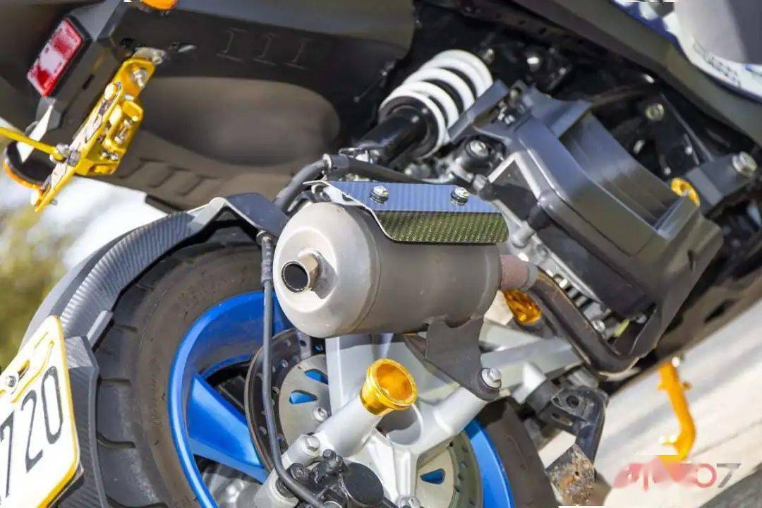 與此同時(shí)也搭配aRacer AF1空燃比機(jī),而有別于FORCE原廠又粗又長(zhǎng)的排氣管尾段,James采用HTMT短管,算是個(gè)人的小偏好,視覺效果上也別有一番趣味。