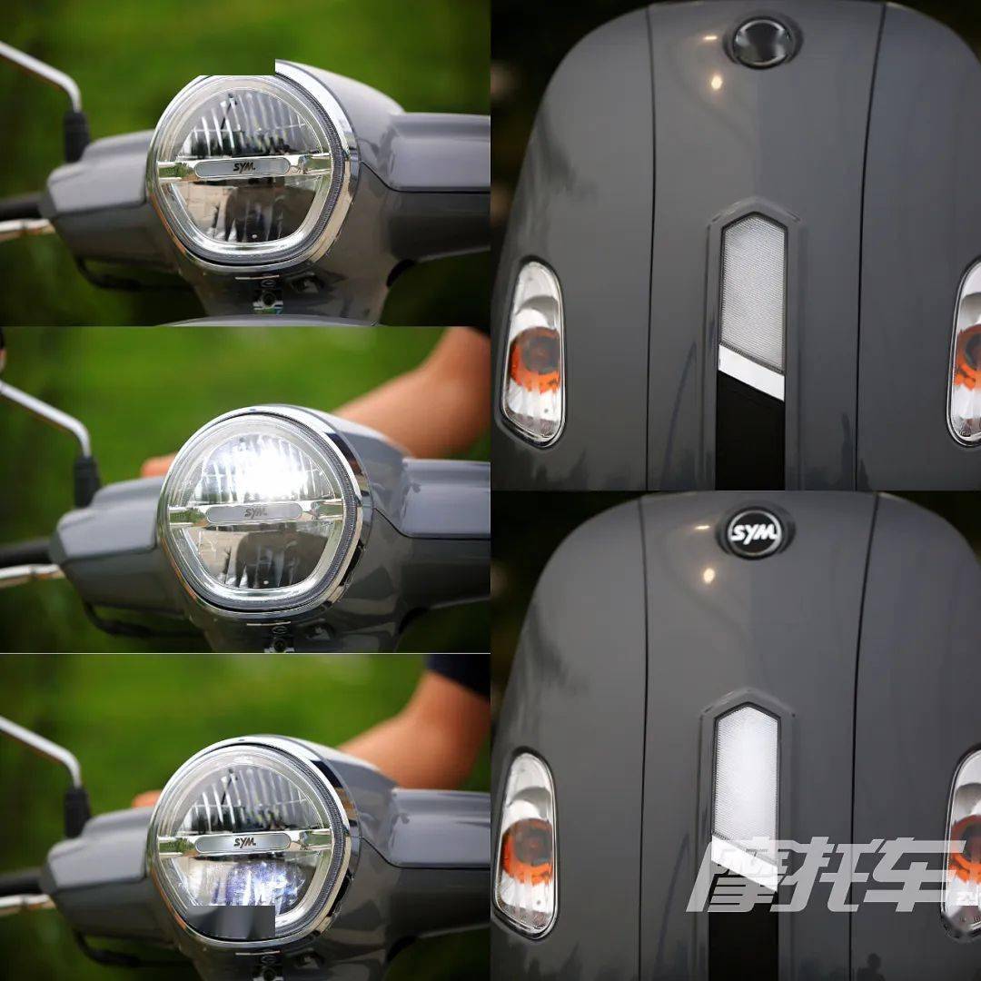FIDDLE 125 ABS在車頭部分同時(shí)運(yùn)用了圓潤和硬直線條兩種設(shè)計(jì)風(fēng)格,上下分層的圓形大燈、圓形后視鏡、前面板邊緣處理是圓潤的復(fù)古風(fēng),而前面板上不規(guī)則多邊形的中央裝飾條和位置燈則起到了增強(qiáng)現(xiàn)代感和時(shí)尚感點(diǎn)綴作用,這樣的設(shè)計(jì)也比老款將位置燈和轉(zhuǎn)向燈放置在一起的做法高明不少。車身后半部分同樣驚艷,流線感的凹凸線條輔以上揚(yáng)的車尾,強(qiáng)化了車輛的動感。全車采用LED燈光,復(fù)古風(fēng)的圓形大燈采用分層設(shè)計(jì),上層為近光燈,下層遠(yuǎn)光燈,中間有三陽LOGO的裝飾條,比老款的鹵素大燈更加美觀。