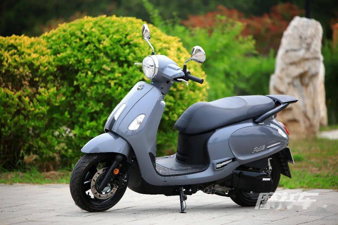 FIDDLE 125 ABS在顏值方面還是收獲了比較廣泛的好評,在線上和線下收集到的反饋中,F(xiàn)IDDLE 125 ABS也頗得小姐姐和文藝青年們的喜愛。FIDDLE 125 ABS在整個(gè)三陽車系乃至目前同級別的踏板車中,在外觀上屬于“小清新”般的存在,給人眼前一亮的感覺,整體設(shè)計(jì)風(fēng)格偏向歐系的輕復(fù)古風(fēng),呈現(xiàn)出典雅時(shí)尚的感覺,能夠在車身上特別是側(cè)面線條上看到與VESPA有一些相似之處。整車的視覺效果是比較圓潤的,同時(shí)也摻進(jìn)了一些硬直的線條來強(qiáng)化設(shè)計(jì)感以及中和審美取向。全車的做工和細(xì)節(jié)也都呈現(xiàn)出不錯(cuò)的水準(zhǔn),四款配色中最受歡迎的就是這款冷灰色,實(shí)車看上去有一種金屬質(zhì)感,顯得格外精致。
